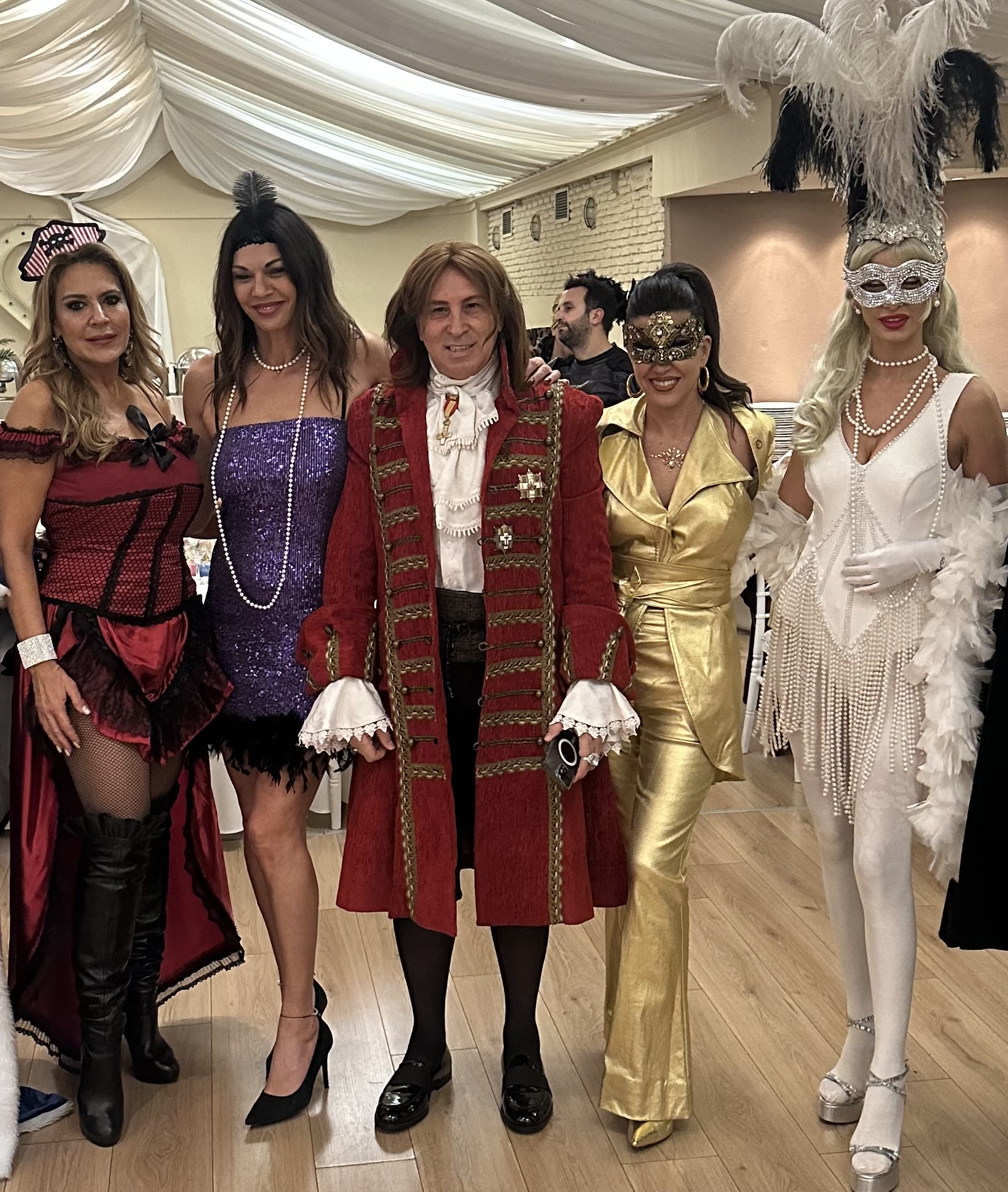 Στο εντυπωσιακό «Opera Masquerade» πάρτι, ο Γιώργος Ντάβλας εμφανίστηκε μαζί με τη σύζυγό του ντυμένος βασιλιάς, κλέβοντας τα βλέμματα με την μεγαλοπρεπή του παρουσία. Πολλοί καλεσμένοι επέλεξαν επίσης κοστούμια εποχής, δημιουργώντας ένα σκηνικό που θύμιζε ιστορική όπερα. Η φαντασία συνδυάστηκε αρμονικά με τη θεατρική πολυτέλεια, κάνοντας τη βραδιά μια πραγματικά μαγευτική εμπειρία για όλους τους συμμετέχοντες.