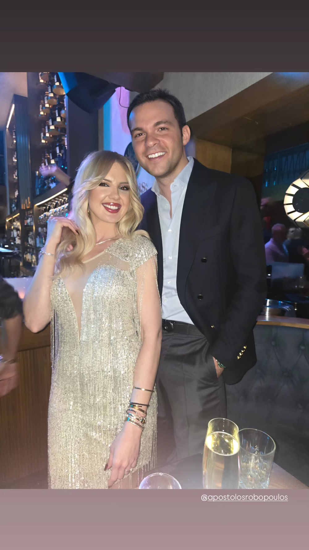 Ο νέος σύντροφός της είναι ο Απόστολος Ρομπόπουλος, γεννημένος στη Θεσσαλονίκη και είναι 36 χρονών. Η οικογένειά του είναι από τις πιο γνωστές στην πόλη και δραστηριοποιούνταν χρόνια στον τομέα του εμπορίου αυτοκινήτων. Ο πατέρας του είναι ο πρώην βουλευτής Θωμάς Ρομπόπουλος. Παρότι ο επιφανής επιχειρηματίας κατοικούσε για χρόνια στο Πανόραμα Θεσσαλονίκης, τα τελευταία χρόνια έχει μετακομίσει στην Αθήνα, ενώ είναι λάτρης και της νυχτερινής διασκέδασης, με συχνές εμφανίσεις στα μπουζούκια τόσο της πρωτεύουσας, όσο και της Θεσσαλονίκης.