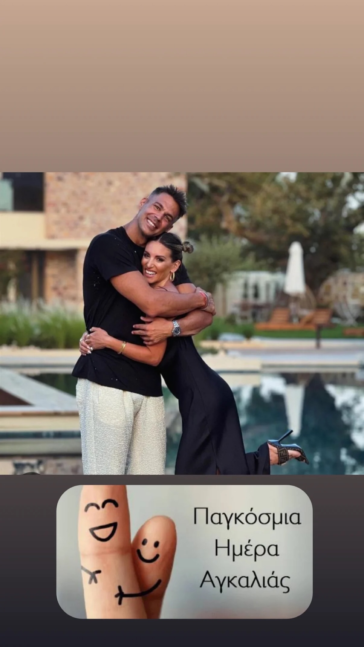 H επιχειρηματίας, η οποία διανύει μία πολύ όμορφη περίοδο τους τελευταίους μήνες, θέλησε να ανεβάσει μία φωτογραφία, που είναι αγκαλιά με τον αγαπημένο της, γράφοντας την εξής λεζάντα: «Παγκόσμια Ημέρα Αγκαλιάς».