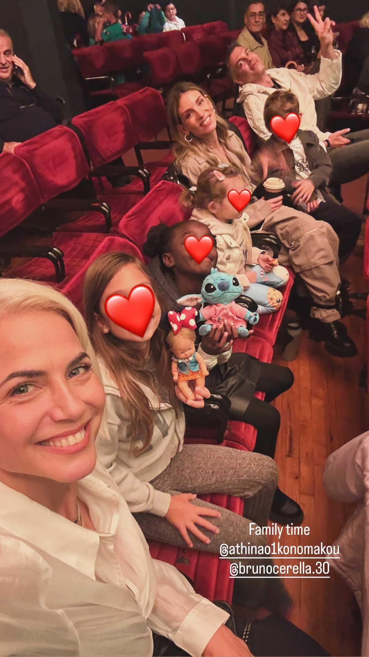 Μια όμορφη οικογενειακή έξοδο απόλαυσαν η Αθηνά Οικονομάκου και ο Μπρούνο Τσερέλα, μαζί με τα δύο παιδιά της ηθοποιού, Μάξιμο και Σιέννα αλλά και την Χριστίνα Κοντοβά με την κόρη της, Έιντα, παρακολουθώντας θεατρική παράσταση.