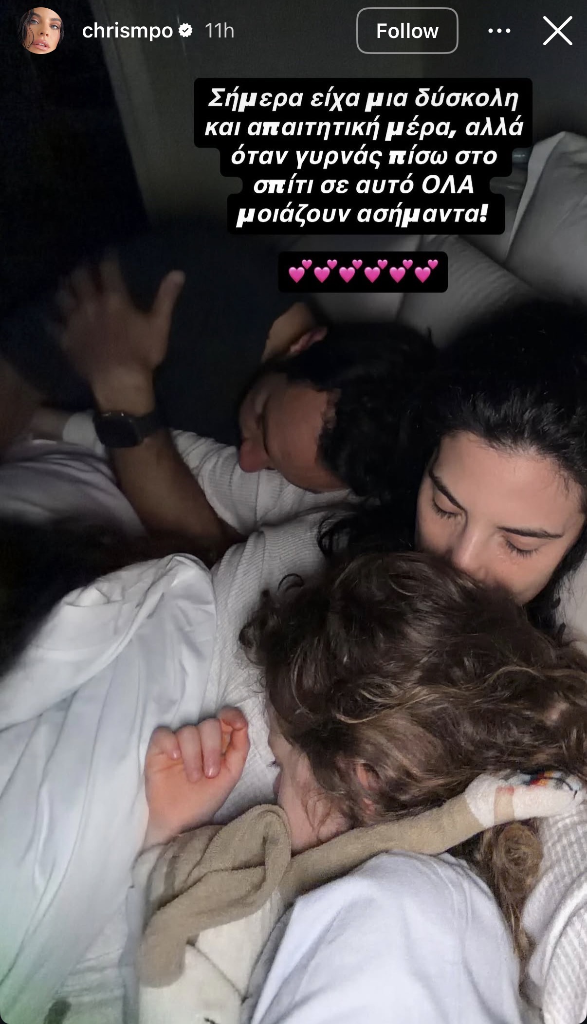 Η Χριστίνα Μπόμπα μοιράστηκε το βράδυ της Πέμπτης 23 Απριλίου μια ιδιαίτερα τρυφερή στιγμή με την οικογένειά της μέσα από τον λογαριασμό της στο Instagram, συνοδεύοντάς τη με μια προσωπική εξομολόγηση.