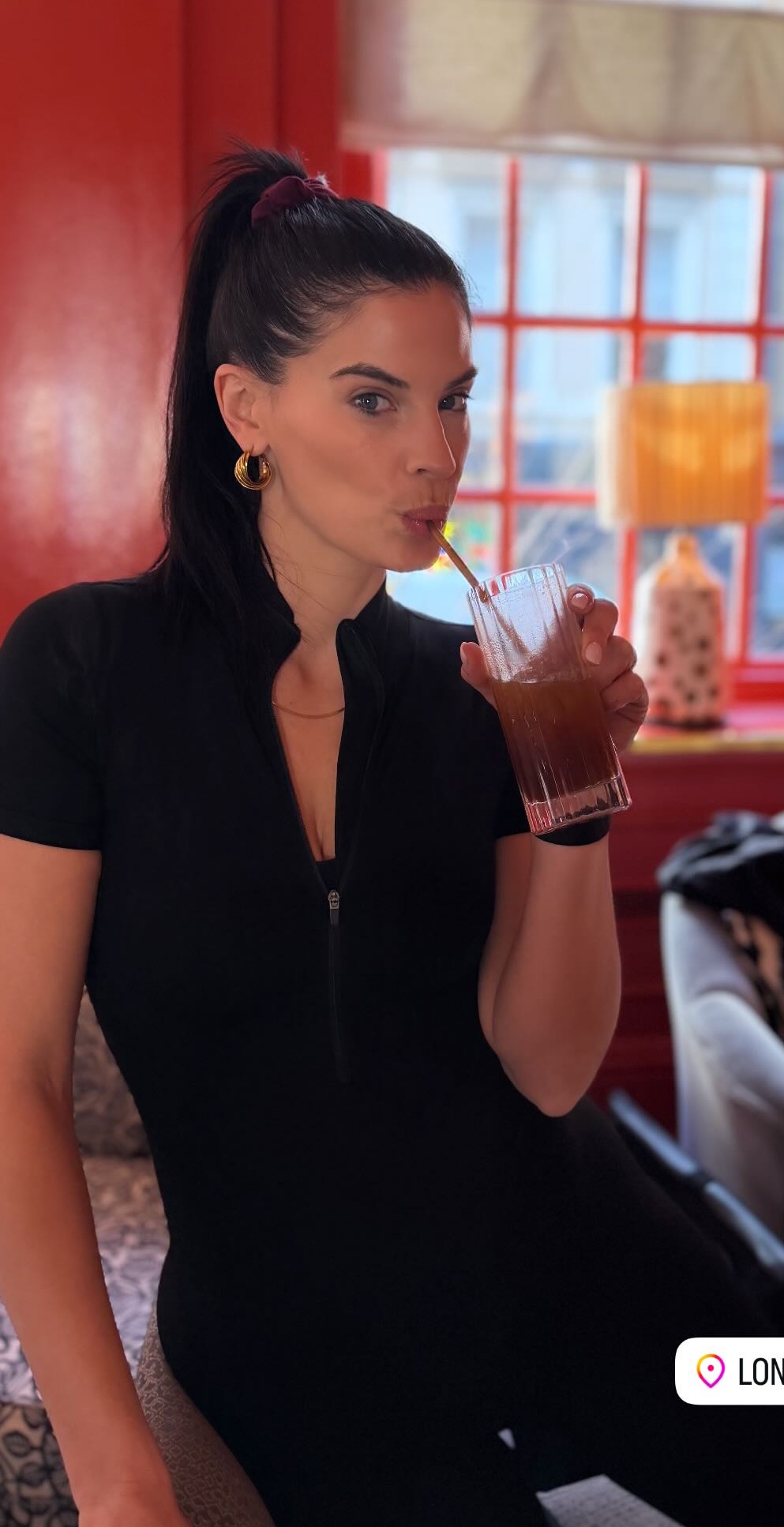 Αρχικά, η Χριστίνα ανέβασε στόρι με την ίδια σε χαλαρές στιγμές, πίνοντας τον καφέ της σε ένα όμορφο καφέ του Λονδίνου. Για την εμφάνισή της εκεί, επέλεξε μια μαύρη ολόσωμη αθλητική φόρμα, συμπληρώνοντας το look με χρυσά αξεσουάρ και τα μαλλιά της χαλαρό κότσο.