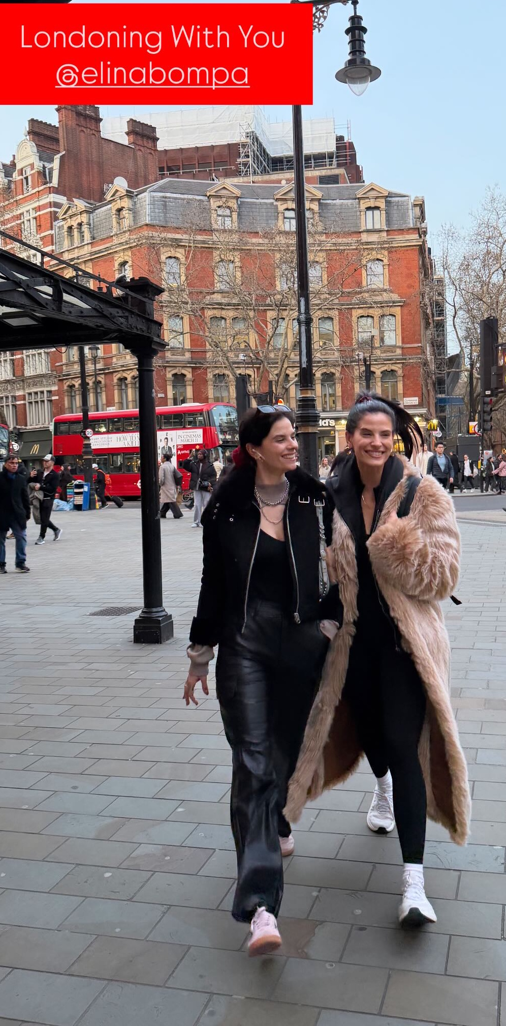 Έπειτα, πόσταρε μια νέα φωτογραφία μαζί με την αδερφή της, Ελίνα, με τις δυό τους να περπατούν χαμογελαστές, στους πολυσύχναστους δρόμους του Λονδίνου. Η Χριστίνα, συνδύασε με την αθλητική ολόσωμη φόρμα της μια μπεζ γούνα, δίνοντας μια sporty chic νότα, ενώ η αδερφή της επέλεξε ένα total black look, leather παντελόνι και λευκά αθλητικά παπούτσια.