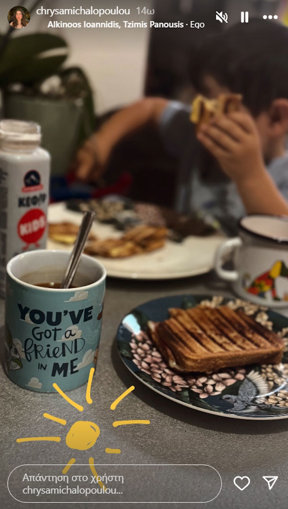 Η Χρύσα Μιχαλοπούλου δημοσίευσε στον προσωπικό της λογαριασμό στο Instagram τη στιγμή που απολαμβάνει το φαγητό μαζί με τον Κίμωνα.