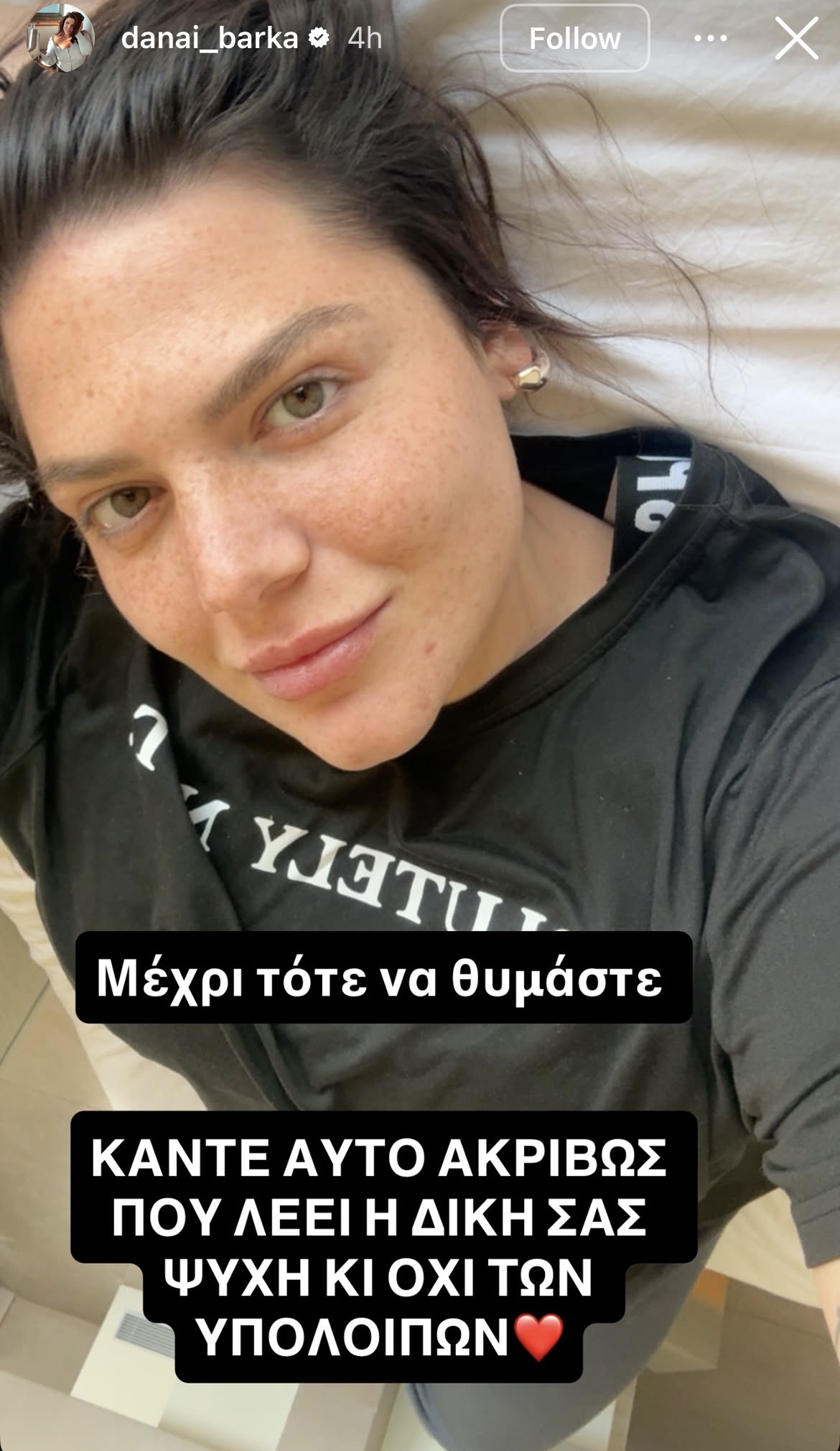 Η Δανάη Μπάρκα δεν αποκάλυψε λεπτομέρειες για το διάλειμμά της, όμως εξήγησε ότι τις τελευταίες μέρες συνέβησαν πολλά γεγονότα, γι’ αυτό και δεν έκανε αναρτήσεις. Στην πρώτη της δημοσίευση έγραψε: «Έχω ψιλοχαθεί, έχετε δίκιο. Έσκασαν πολλά μαζί. Να περάσουν αυτές οι μέρες και θα σας πω τα νέα μου». Στη δεύτερη, πρόσθεσε ένα μήνυμα που αποτυπώνει τη φιλοσοφία της: «Μέχρι τότε να θυμάστε. Κάντε αυτό που ακριβώς λέει η δική σας ψυχή και όχι των υπολοίπων».