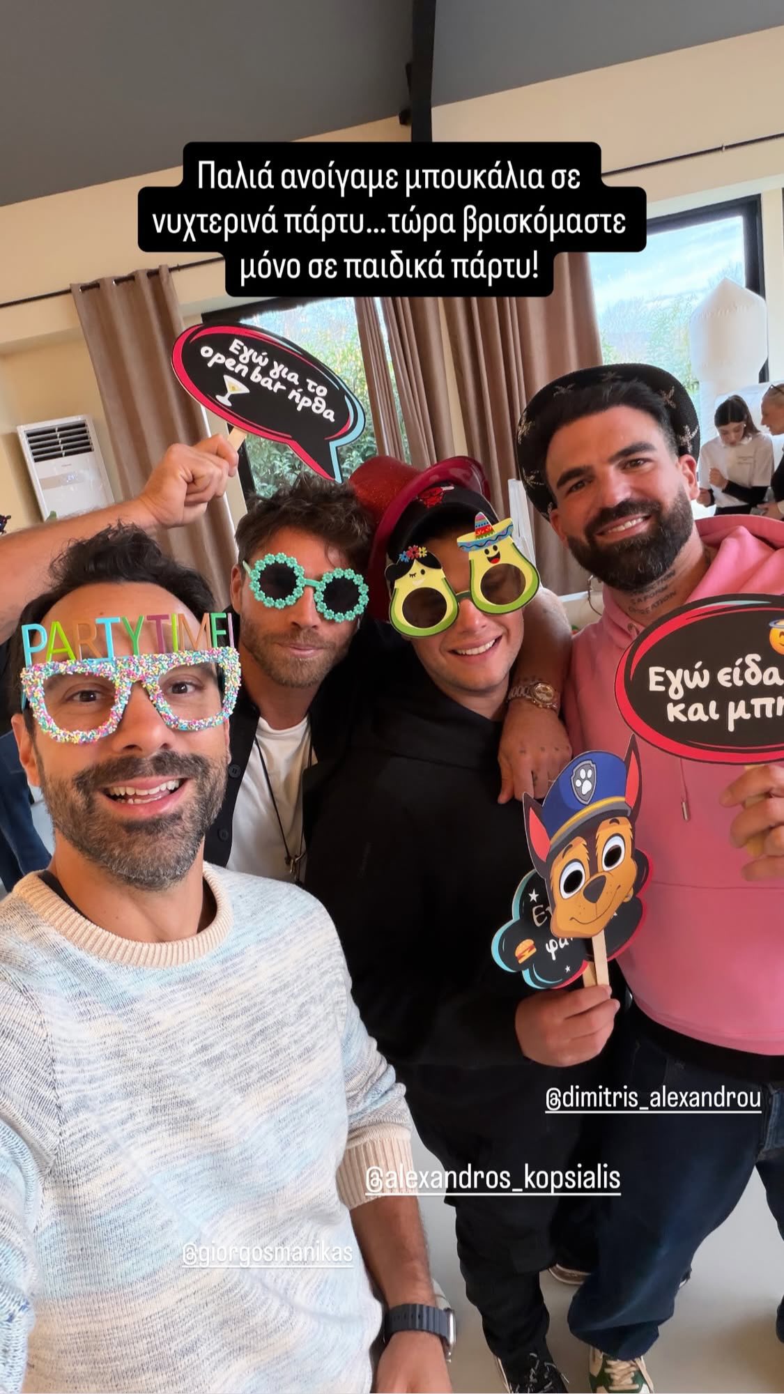 Όπως θα δείτε, μέσα από τα stories του, το πάρτυ έχει ήδη ξεκινήσει, με τους πρώτους καλεσμένους να έρχονται. Μερικοί από αυτούς είναι ο Σάκης Τανιμανίδης και ο Γιώργος Μανίκας και ο Αλέξανδρος Κοψιάλης.