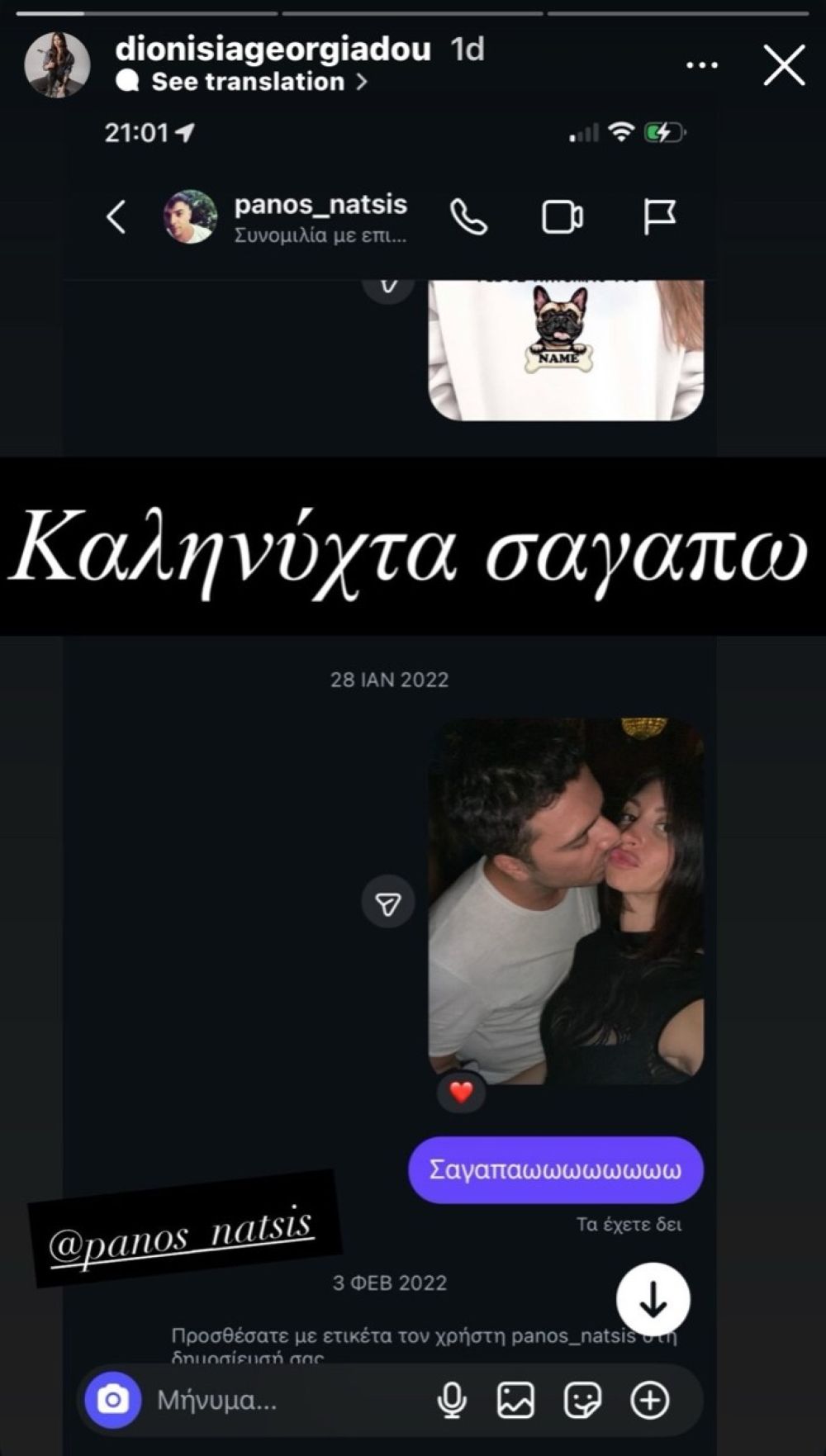 Σε μία από τις εικόνες εμφανίζεται συνομιλία με τη φράση «Καληνύχτα σ’ αγαπάω», ενώ σε άλλη ανάρτηση αναγράφεται ξεκάθαρα η ημερομηνία «29/1/22», ημερομηνία που σηματοδότησε τον αιφνίδιο θάνατο του ηθοποιού.