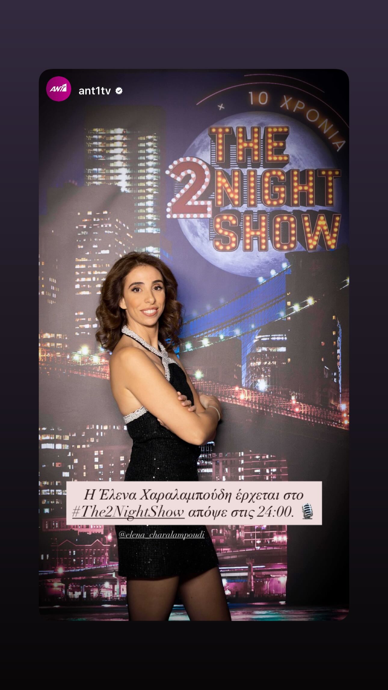 Η Έλενα Χαραλαμπούδη εμφανίστηκε στο «The 2Night Show» με τον Γρηγόρη Αρναούτογλου το βράδυ της Δευτέρας 1ης Δεκεμβρίου, μοιράζοντας στιγμές και σκέψεις με τη χαρακτηριστική της αμεσότητα.