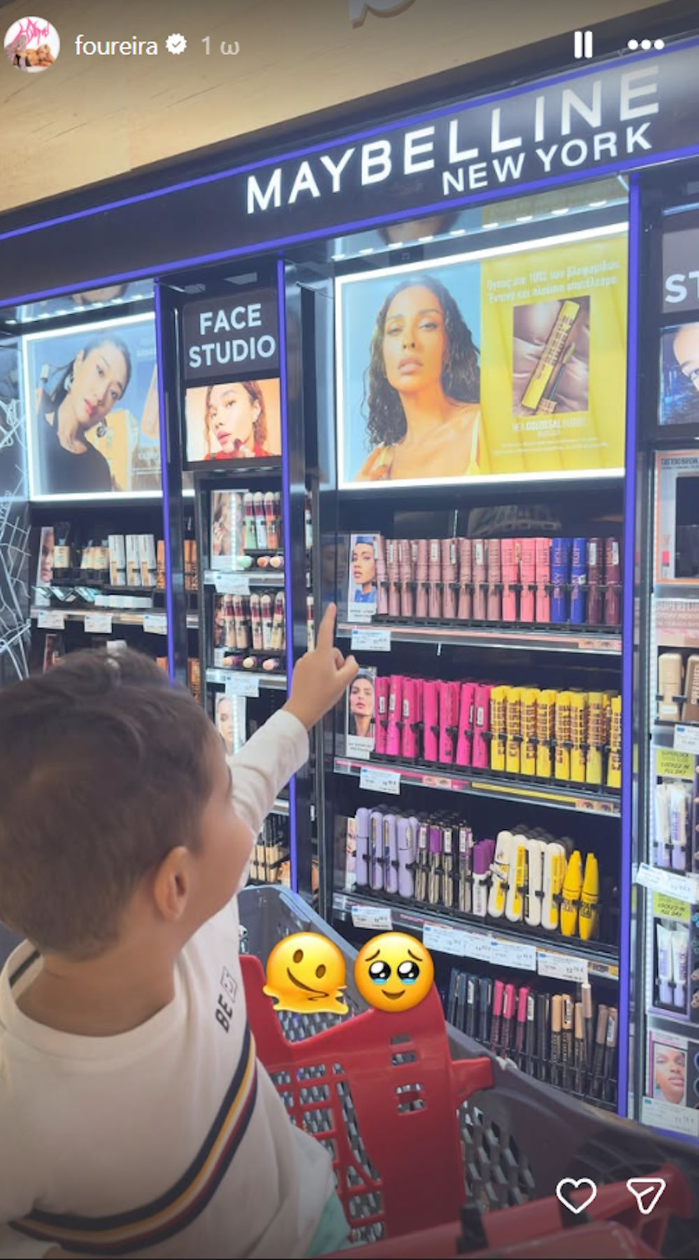 Η τραγουδίστρια είναι μια πολύ περήφανη και τρυφερή μαμά και κάθε φορά που μιλά για την οικογένειά της, «λιώνει» από ευτυχία και αγάπη. Η Ελένη Φουρέιρα το απόγευμα του Σαββάτου 8 Νοεμβρίου πήγε για ψώνια με τον Ερμή και σε ένα σημείο, είχε την αφίσα της που διαφήμιζε γνωστά καλλυντικά.