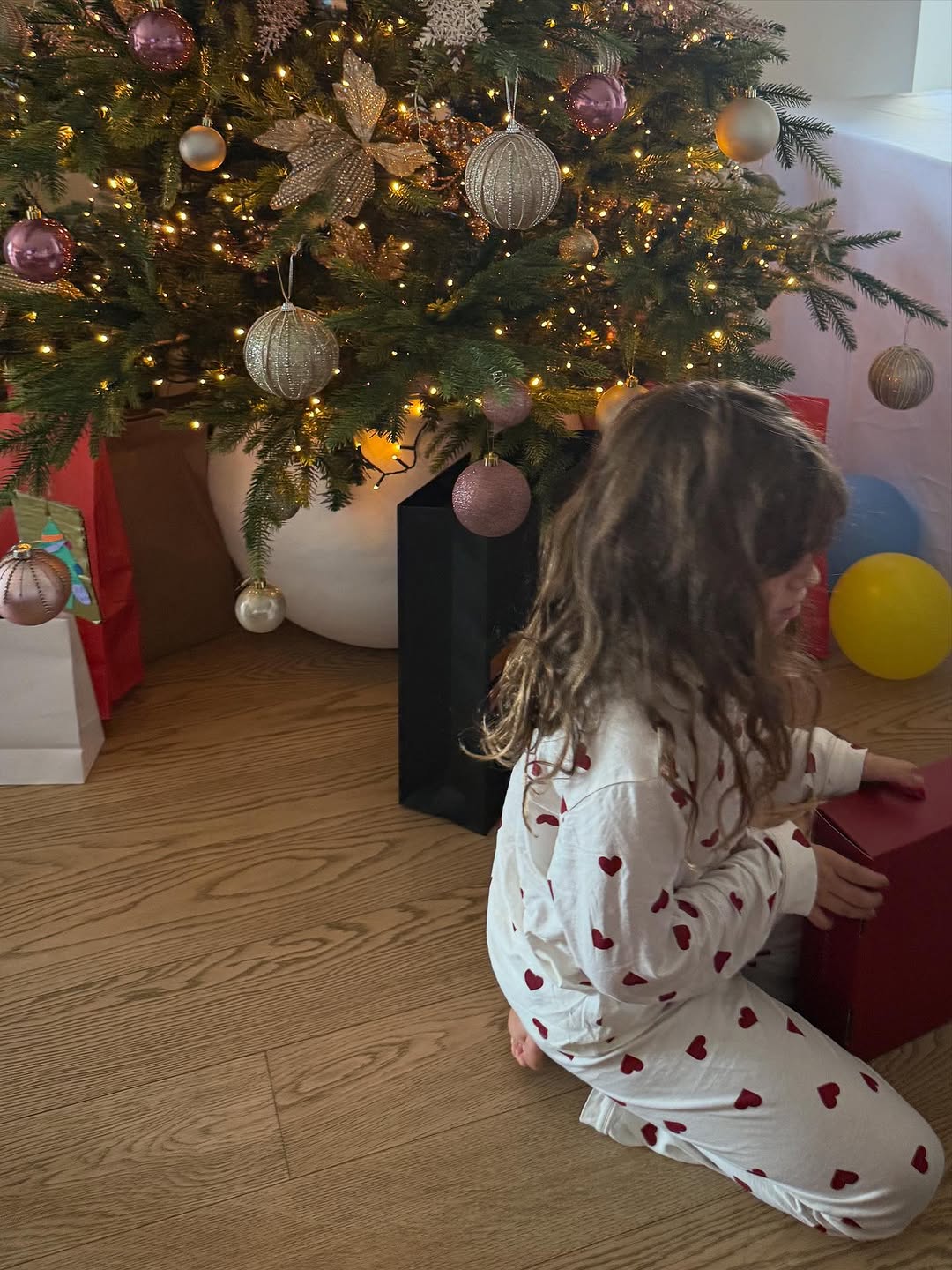 Στα στιγμιότυπα που δημοσίευσε στον προσωπικό της λογαριασμό στο Instagram, βλέπουμε το στολισμένο δέντρο και την ατμόσφαιρα του σπιτιού, ενώ στο επίκεντρο βρίσκεται η κόρη τους, Αλεξάνδρα, που ζει τη μαγεία των Χριστουγέννων.