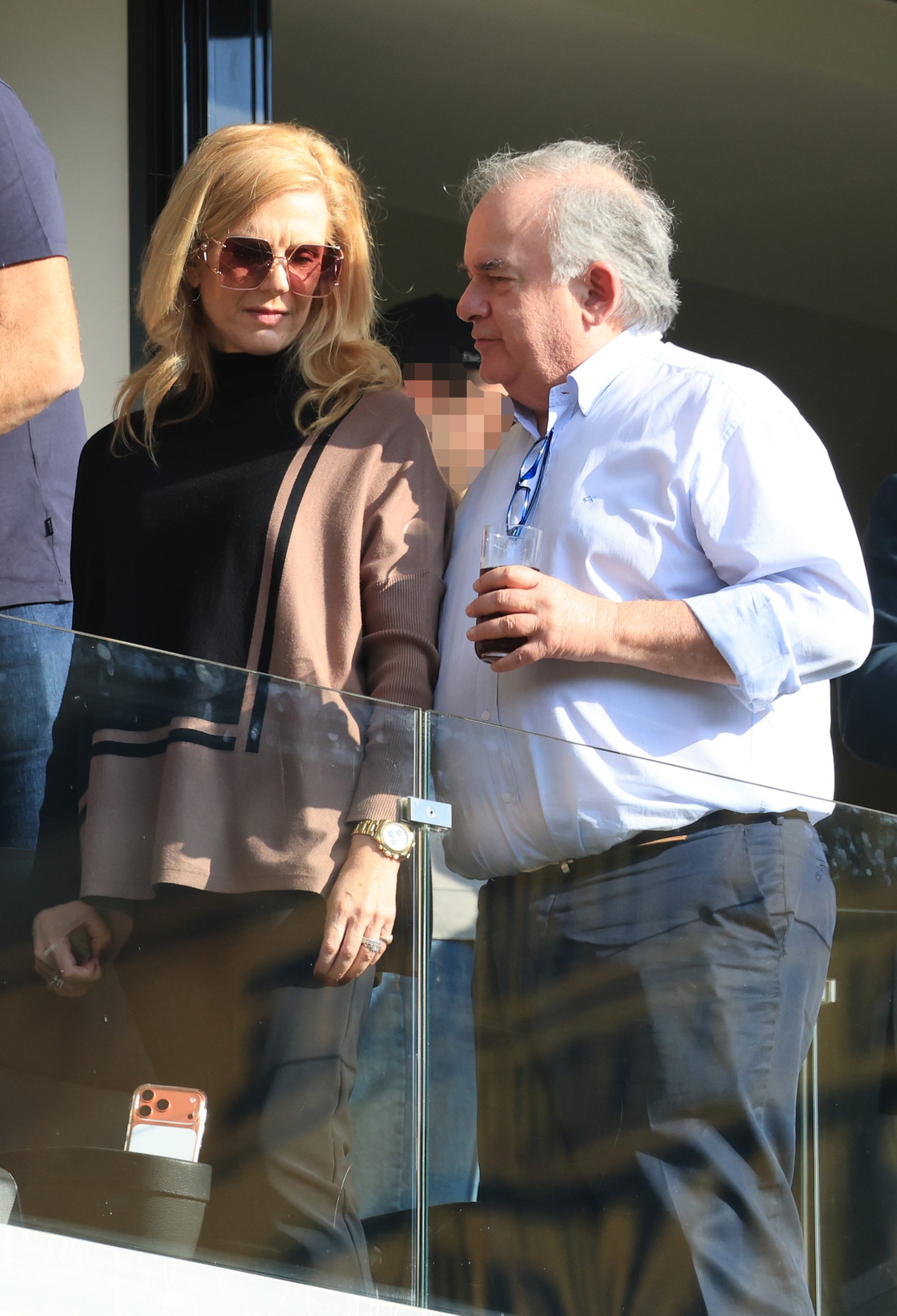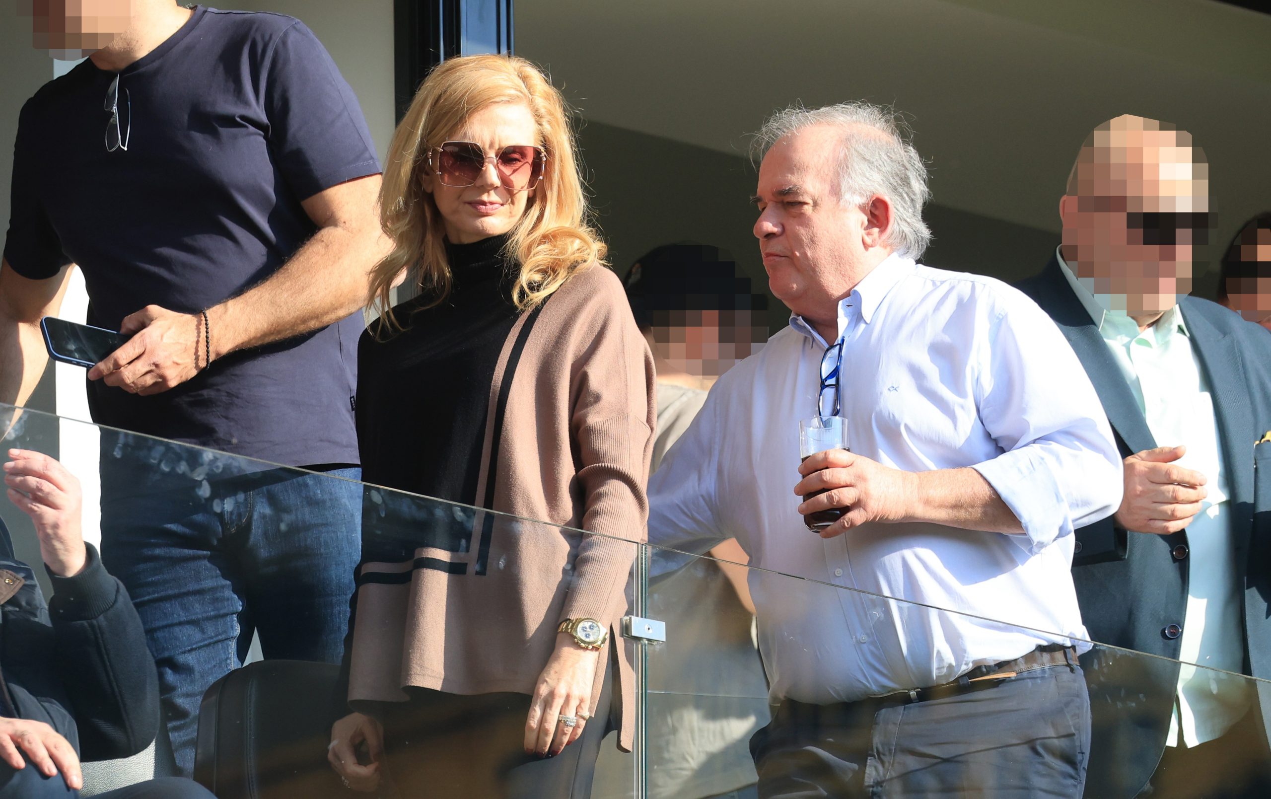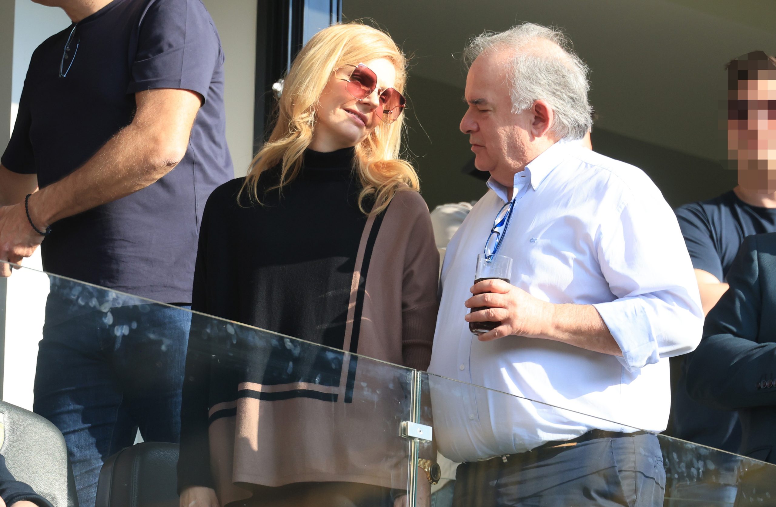 Η δημοσιογράφος και ο γνωστός εφοπλιστής έδειχναν ιδιαίτερα άνετοι, με τις φωτογραφίες να τους αποτυπώνουν σε στιγμές χαλαρής συνομιλίας, ενώ παρακολουθούσαν όσα συνέβαιναν στον αγωνιστικό χώρο.