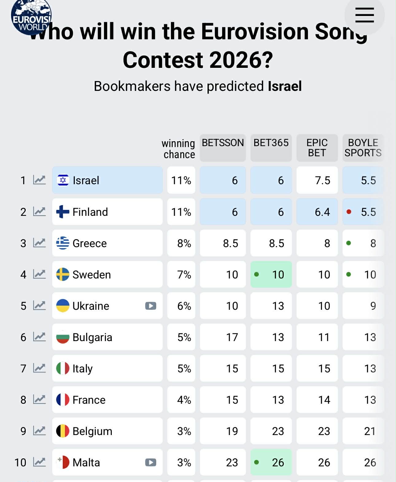 Το σίγουρο είναι πως σίγουρα θα υπάρξουν ανατροπές στην αποψινή βραδιά, κάτι που έχουμε δει ουκ ολίγες φορές να συμβαίνει στον διαγωνισμό της Eurovision.
