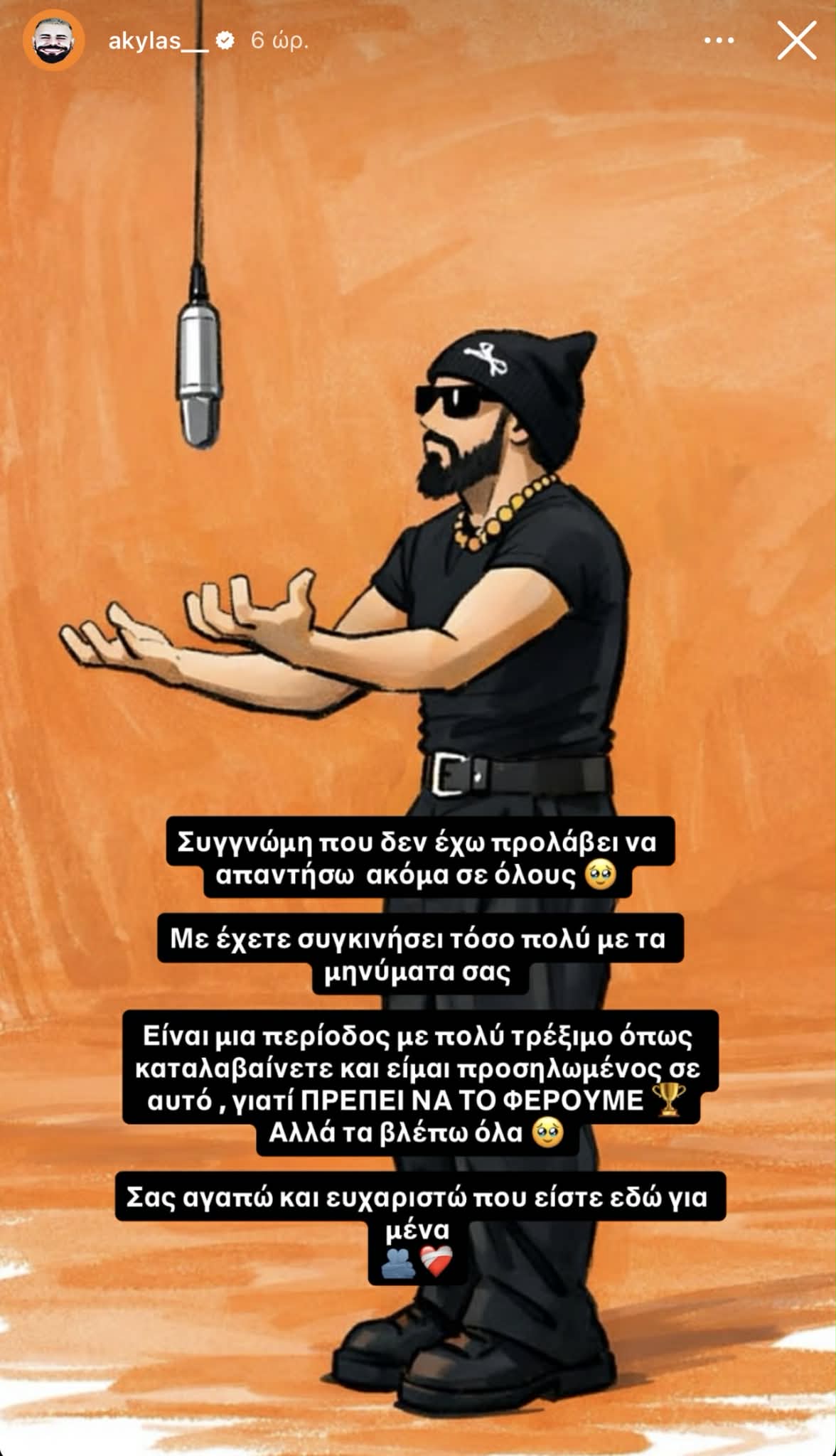 Ωστόσο, ο ίδιος, έχει δεχθεί πληθώρα σχολίων και θετικών αντιδράσεων το τελευταίο διάστημα, κάτι το οποίο τον συγκίνησε πολύ και έτσι ήθελε να αφήσει το δικό του μήνυμα στους θαυμαστές του, στα social media. Ο ίδιος, σήμερα, έγραψε τα εξής, στο Instagram: «Συγγνώμη που δεν έχω προλάβει να απαντήσω σε όλους. Με έχετε συγκινήσει τόσο πολύ με τα μηνύματά σας. Είναι μια περίοδος με πολύ τρέξιμο όπως καταλαβαίνετε και είμαι προσηλωμένος σε αυτό, γιατί ΠΡΕΠΕΙ ΝΑ ΤΟ ΦΕΡΟΥΜΕ, αλλά τα βλέπω όλα. Σας αγαπώ και ευχαριστώ που είστε εδώ για μένα».