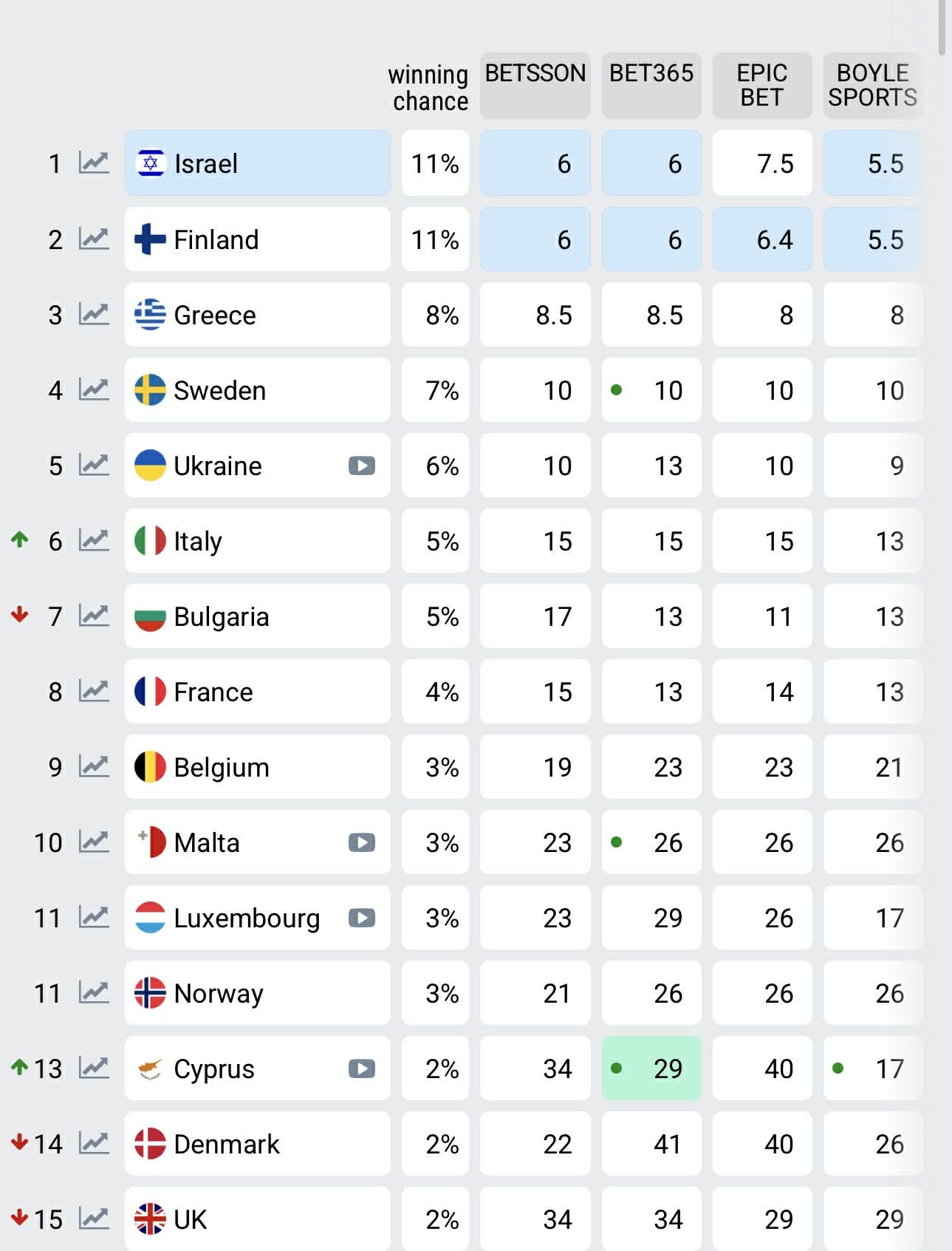 Συγκεκριμένα, πριν την δημοσιοποίηση της φετινής συμμετοχής, η Κύπρος βρισκόταν χαμηλά στις στοιχηματικές αποδόσεις, πέριξ των θέσεων 22-26. Από τη στιγμή που κυκλοφόρησε το «Jalla», η Κύπρος ανέβηκε στις θέσεις 16-17, για να καταλήξει σήμερα στην 13η θέση.