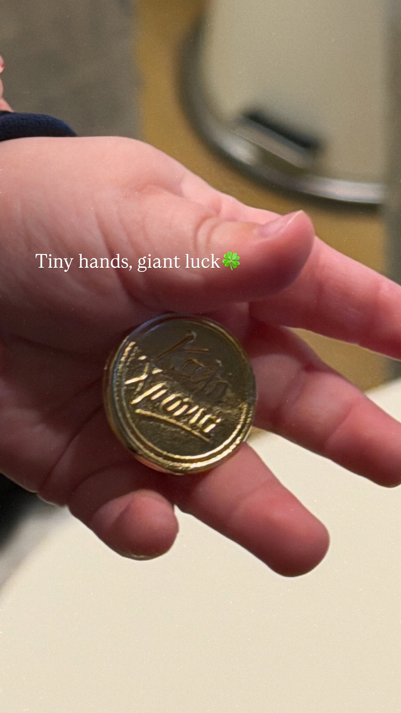Χαρακτηριστικά, ανέβασαν μια φωτογραφία με το χεράκι του αγοριού τους, κρατώντας το φλουρί και με την εξής λεζάντα: «Μικροσκοπικά χέρια, γιγάντια τύχη».