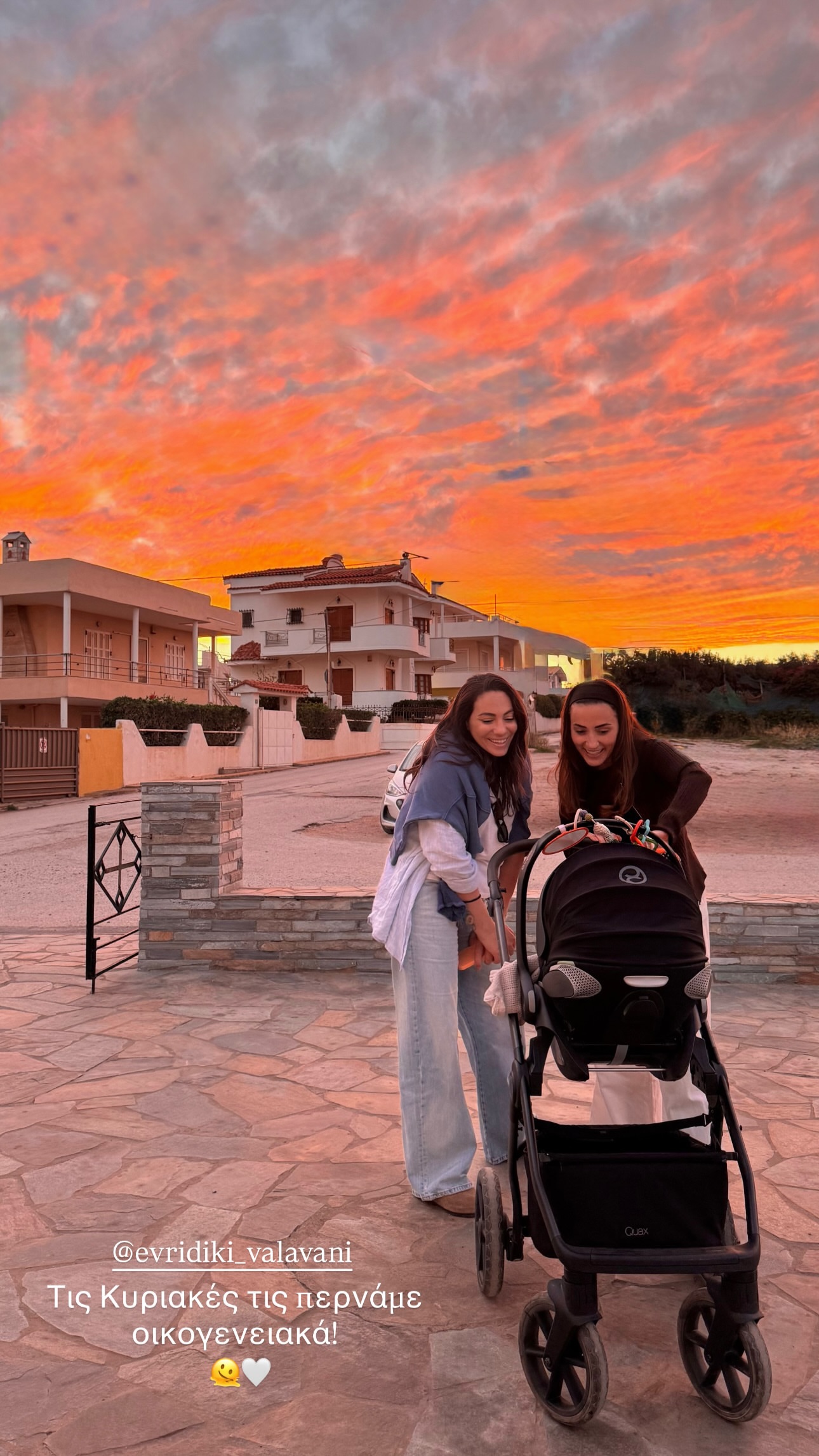 Μια τρυφερή στιγμή μοιράστηκε η Γωγώ Φαρμάκη μέσα από τα stories της στο Instagram, μαζί με την Ευρυδίκη Βαλαβάνη. Οι δύο γυναίκες πόζαραν στον φακό με φόντο το ηλιοβασίλεμα, ενώ χαμογελούν στον γιο της Ευρυδίκης Βαλαβάνη.
