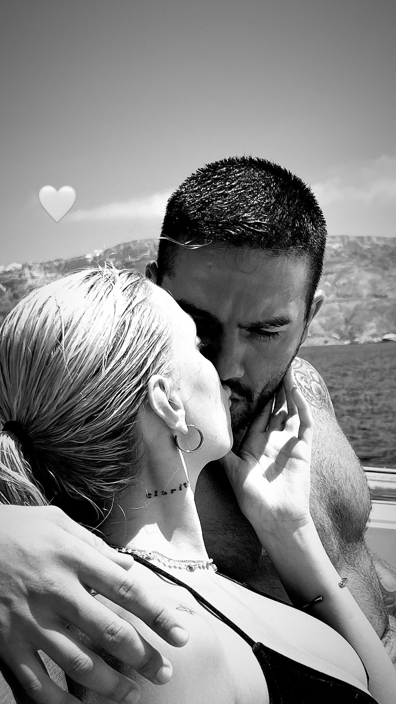 Στον προσωπικό της λογαριασμό στο Instagram, δημοσίευσε μια φωτογραφία από τις καλοκαιρινές τους διακοπές όπου ανταλλάσσουν ένα παθιασμένο φιλί.
