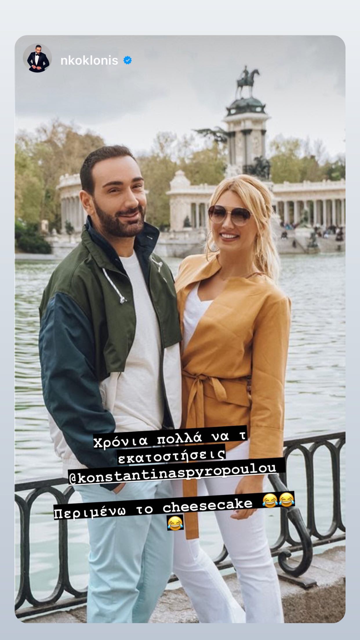 Επιλέγοντας ένα girly φόρεμα σε παστέλ απόχρωση με κρόσια και έχοντας ένα μεγάλο χαμόγελο, η γνωστή παρουσιάστρια υποδέχθηκε τους καλεσμένους της στο εστιατόριο Goya στη Γλυφάδα. Από το πρωί της Τετάρτης η Κωνσταντίνα Σπυροπούλου δεν σταμάτησε να δέχεται ευχές και μηνύματα αγάπης από τους διάσημους φίλους της. ανάμεσα σε αυτούς ήταν και ο Νίκος Κοκλώνης που μαζί με τις ευχές του της ζήτησε με χιούμορ να του φέρει το αγαπημένο του cheesecake.