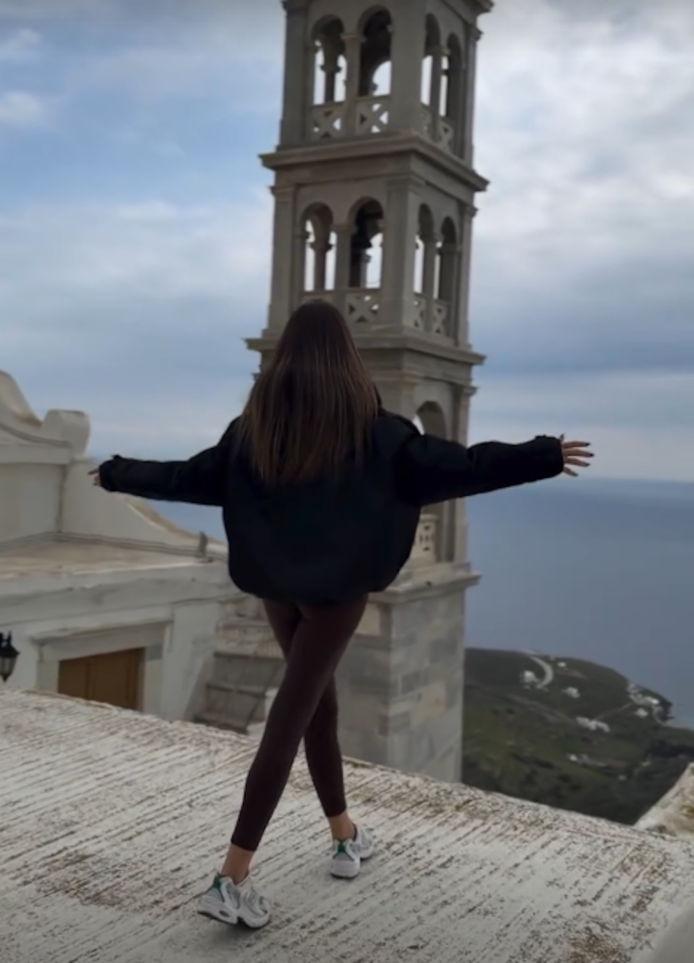 Το ζευγάρι φωτογραφήθηκε στην ίδια ακριβώς τοποθεσία στην Καρδιανή της Τήνου, η οποία αποτελεί ένα από τα ωραιότερα χωριά, αγναντεύοντας από ψηλά το Αιγαίο και τη Σύρο. Πόζαραν με φόντο τον ορθόδοξο ενοριακό Ναό της Αγίας Τριάδας στο χωριό, με το εντυπωσιακό καμπαναριό, ενώ το βράδυ της Ανάστασης, βρέθηκαν στην Παναγία της Τήνου για την καθιερωμένη λειτουργία.
