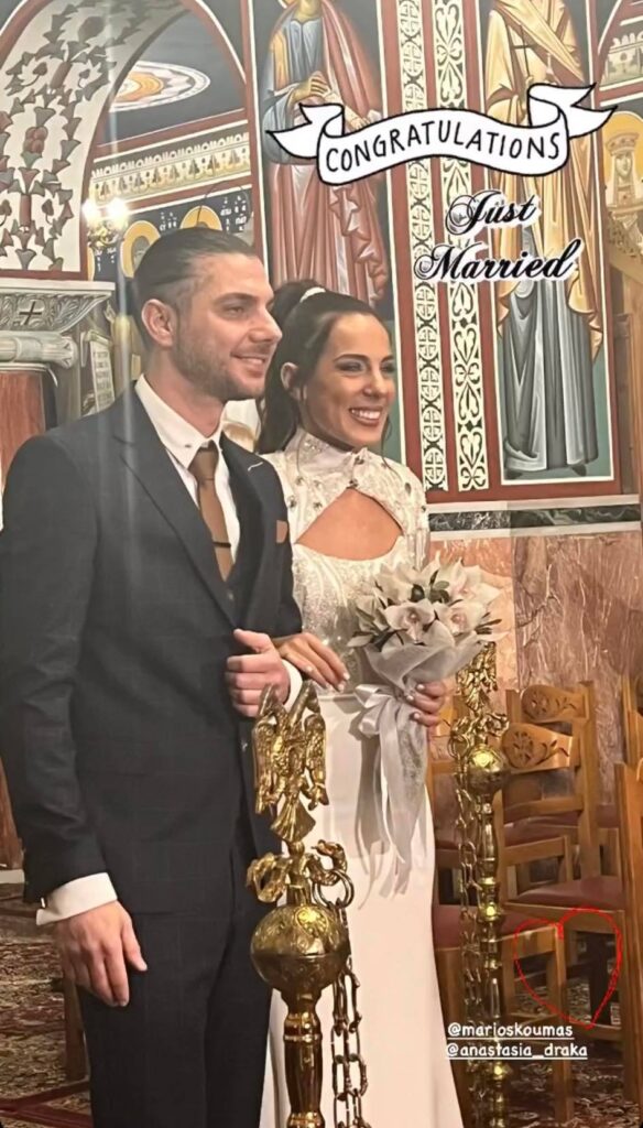 Ο λόγος για την Αναστασία Δρακά που παντρεύτηκε τον αγαπημένο της Μάριο Κούμα σήμερα Παρασκευή 30 Δεκεμβρίου στον Ιερό Ναό Παναγιας Μυρτιδιώτισσας στο Μικρολίμανο με κουμπάρους τον Λοΐζο Φιλανιώτη και την Βασιλική Τσιμάρα.