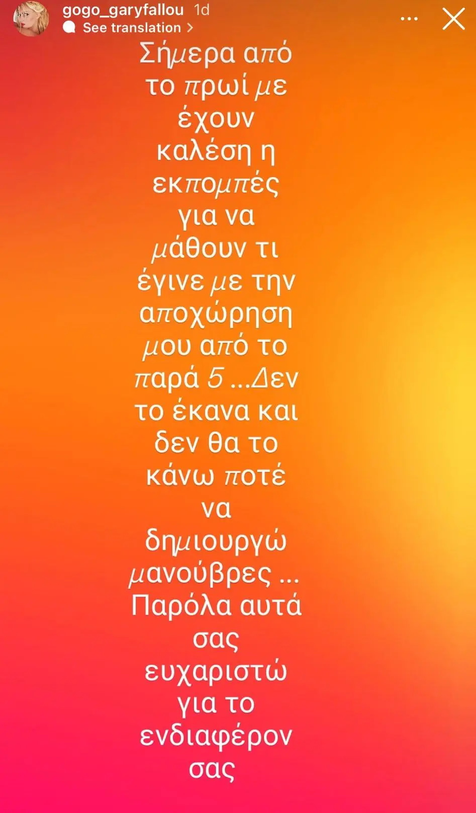 Αναμφίβολα, με αυτή την ανάρτηση, δημιούργησε ντόρο, καθώς πολλοί δημοσιογράφοι ήταν αυτοί που ήθελαν να πάρουν δηλώσεις από την ίδια. Ωστόσο, η παρουσιάστρια, απάντησε με το εξής story:
