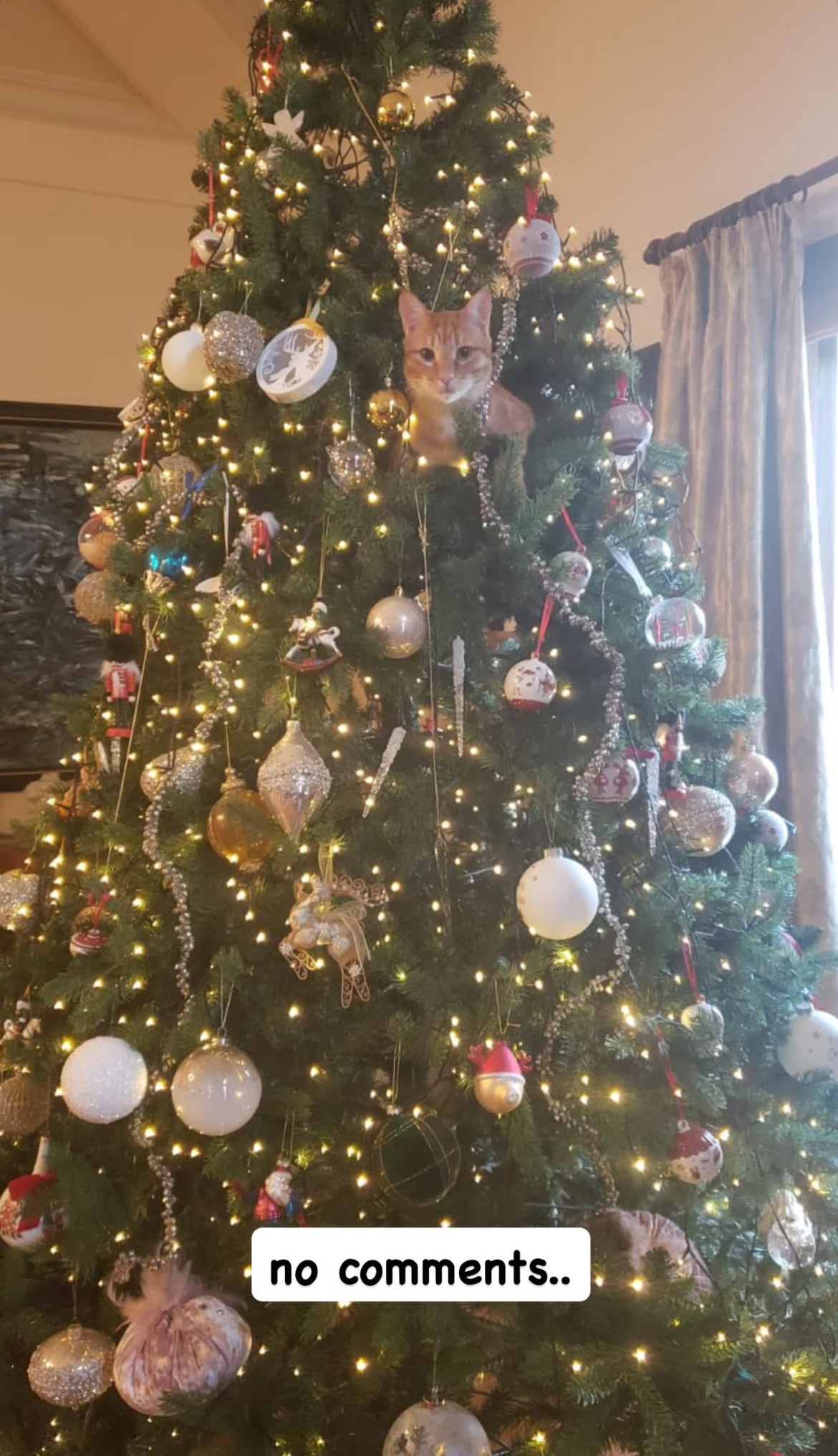Το αγαπημένο της κατοικίδιο αποφάσισε να «σκαρφαλώσει» στα κλαδιά και να ποζάρει σαν κανονικό στολίδι, δημιουργώντας μια εικόνα που δεν άφησε κανέναν αδιάφορο. Η Φαίη Σκορδά μάλιστα συνόδευσε την ανάρτησή της στο Instagram με το χιουμοριστικό σχόλιο «no comments», αφήνοντας τη φωτογραφία να μιλήσει από μόνη της.