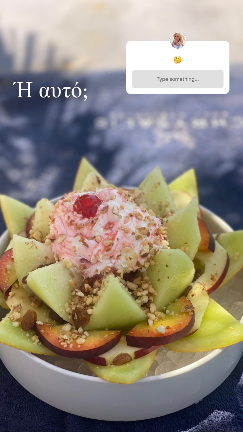 Το μόνο σίγουρο είναι ότι η Κωνσταντίνα βρίσκεται σε πολύ καλή διάθεση. Μέσα από το Instagram της έδειξε στους διαδικτυακούς της φίλους και τι επέλεξε να φάει στο νησί.