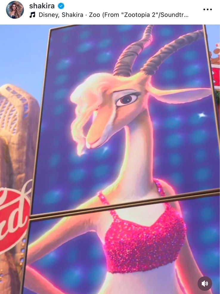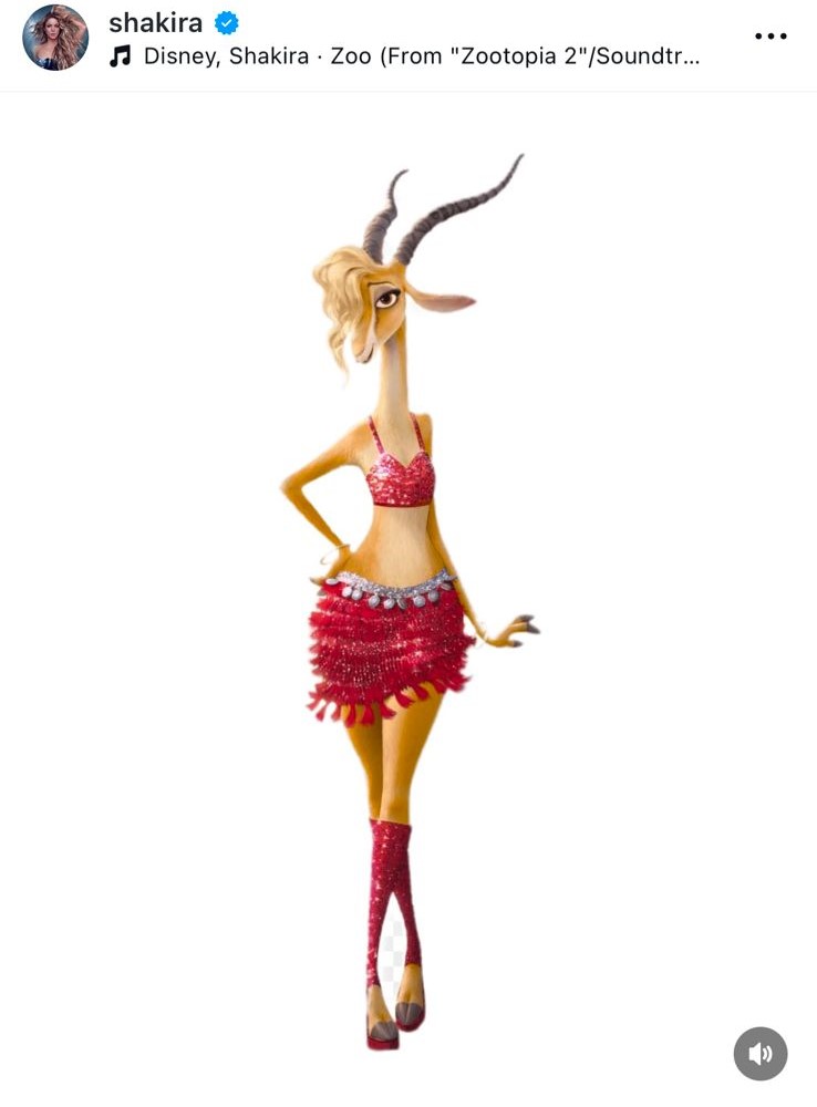 Στην λεζάντα μάλιστα γράφει: “Gazelle in 2016” θυμίζοντας στους φαν της ότι στην αυθεντική ταινία του 2016, η Σακίρα έδωσε τη φωνή της στην Gazelle, έναν παγκοσμίως αγαπημένο χαρακτήρα, μια φανταστική pop star–gazelle μέσα στην πόλη της Ζootopia και ερμήνευσε το τραγούδι «Try Everything» για το soundtrack της ταινίας.