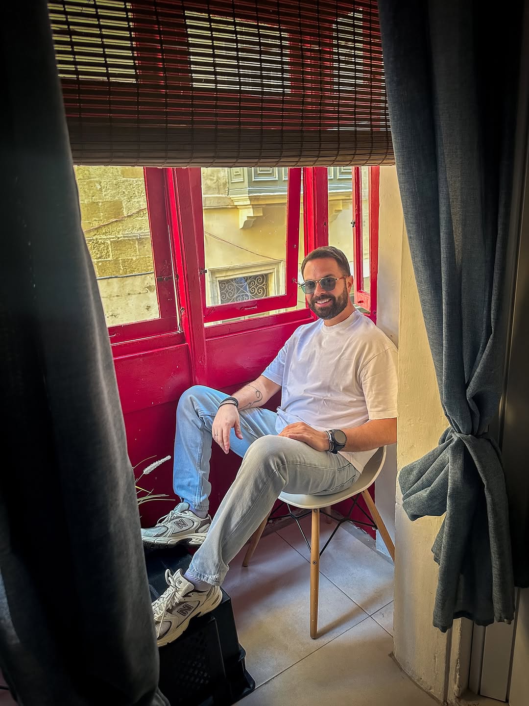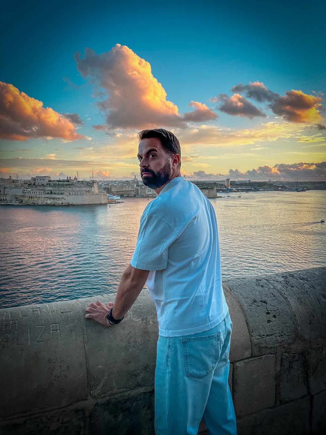 Στις φωτογραφίες τον βλέπουμε να ποζάρει με φόντο το μαγευτικό ηλιοβασίλεμα πάνω από το λιμάνι της Βαλέτας, ντυμένος casual με τζιν και λευκό t–shirt. Σε άλλο καρέ περπατά μόνος σε στενό δρομάκι με τα χαρακτηριστικά μπαλκόνια και τα πολύχρωμα παραθυρόφυλλα της παλιάς πόλης.