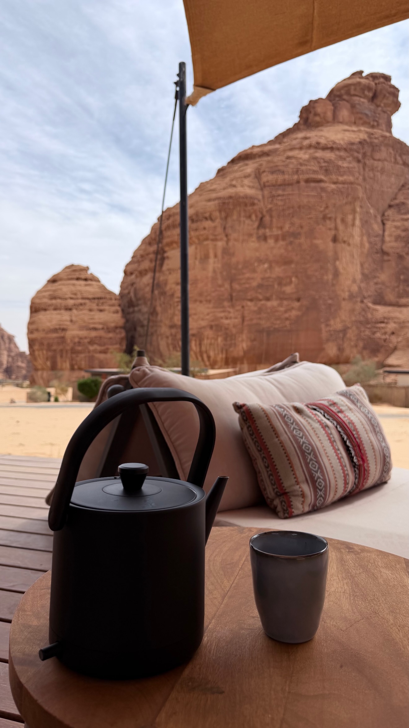 Το ταξίδι της στη Σαουδική Αραβία συνεχίζεται, με την ίδια να μοιράζεται καθημερινά στιγμές από την εμπειρία της, συνδυάζοντας εικόνες χαλάρωσης και εντυπωσιακά τοπία.