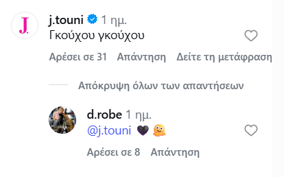 Στο Λονδίνο, ένα σχόλιο κάτω από ανάρτησή του στάθηκε αφορμή για την πρώτη της εμφανή αντίδραση σε post του αγαπημένου της. Η Ιωάννα Τούνη έγραψε «γκούχου γκούχου» και ο Δημήτρης Σπυριδωνίδης της απάντησε με μια καρδιά και emoji με προσωπάκι που «λιώνει», κερδίζοντας αμέσως την προσοχή των followers.