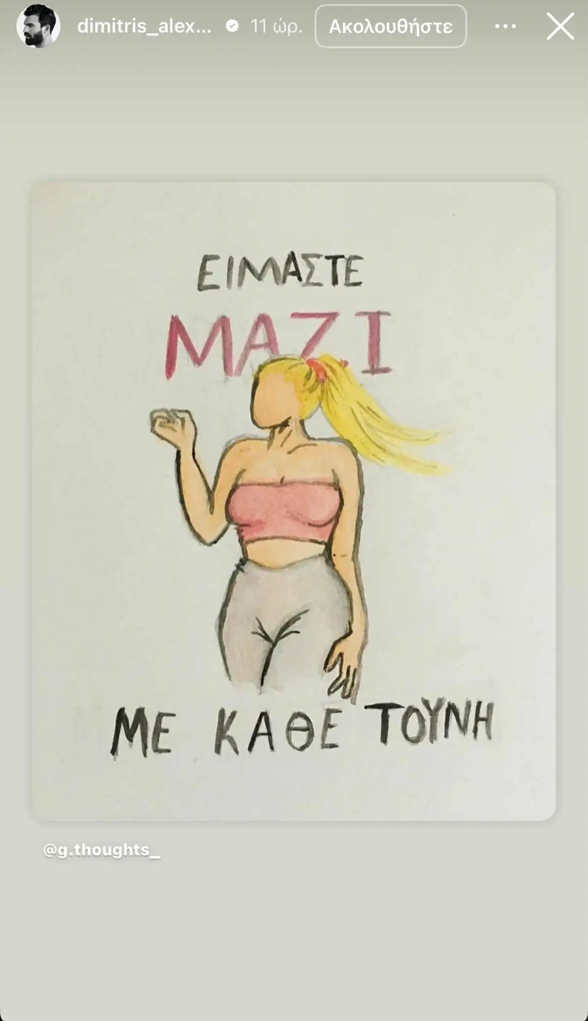 Μέσα σε όλη αυτή τη συναισθηματική πίεση, στο πλευρό της βρέθηκε δημόσια και ο Δημήτρης Αλεξάνδρου. Ο παρουσιαστής αναδημοσίευσε μια εικόνα στήριξης για την πρώην σύντροφό του, στην οποία αναγραφόταν το μήνυμα: «Είμαστε μαζί με κάθε Τούνη», δείχνοντας έτσι ξεκάθαρα πως, παρά το ότι δεν είναι πια μαζί, στηρίζει τη μάχη που δίνει.