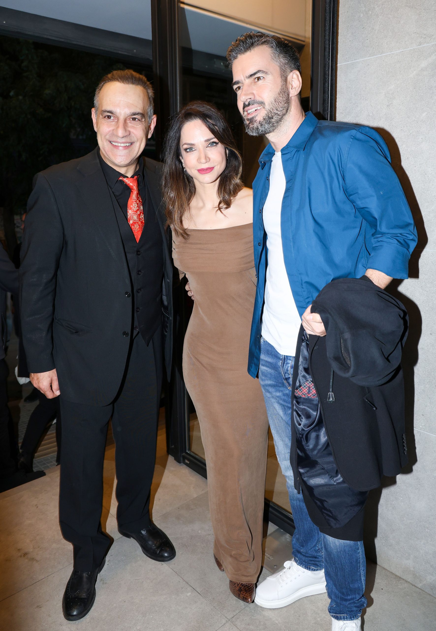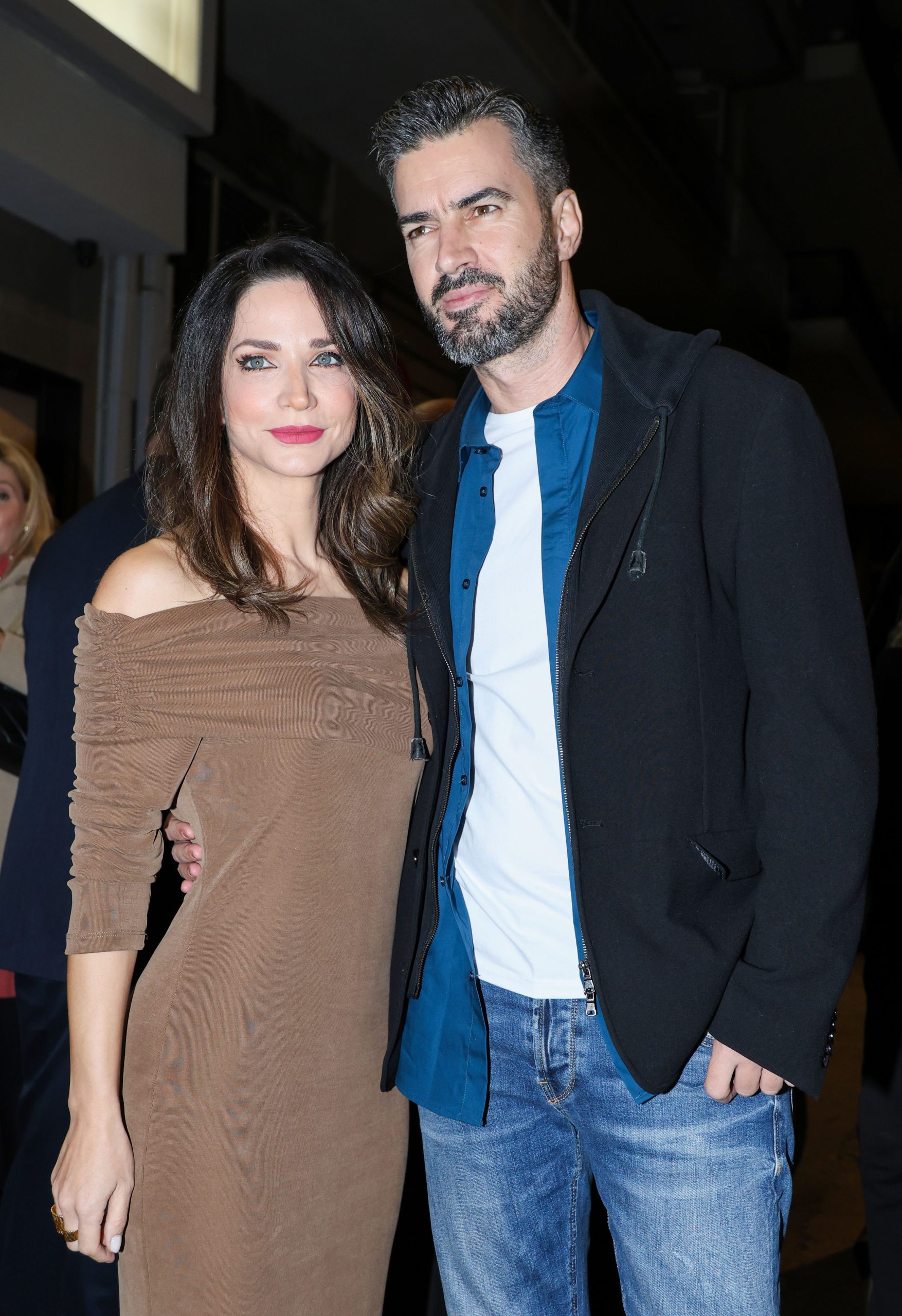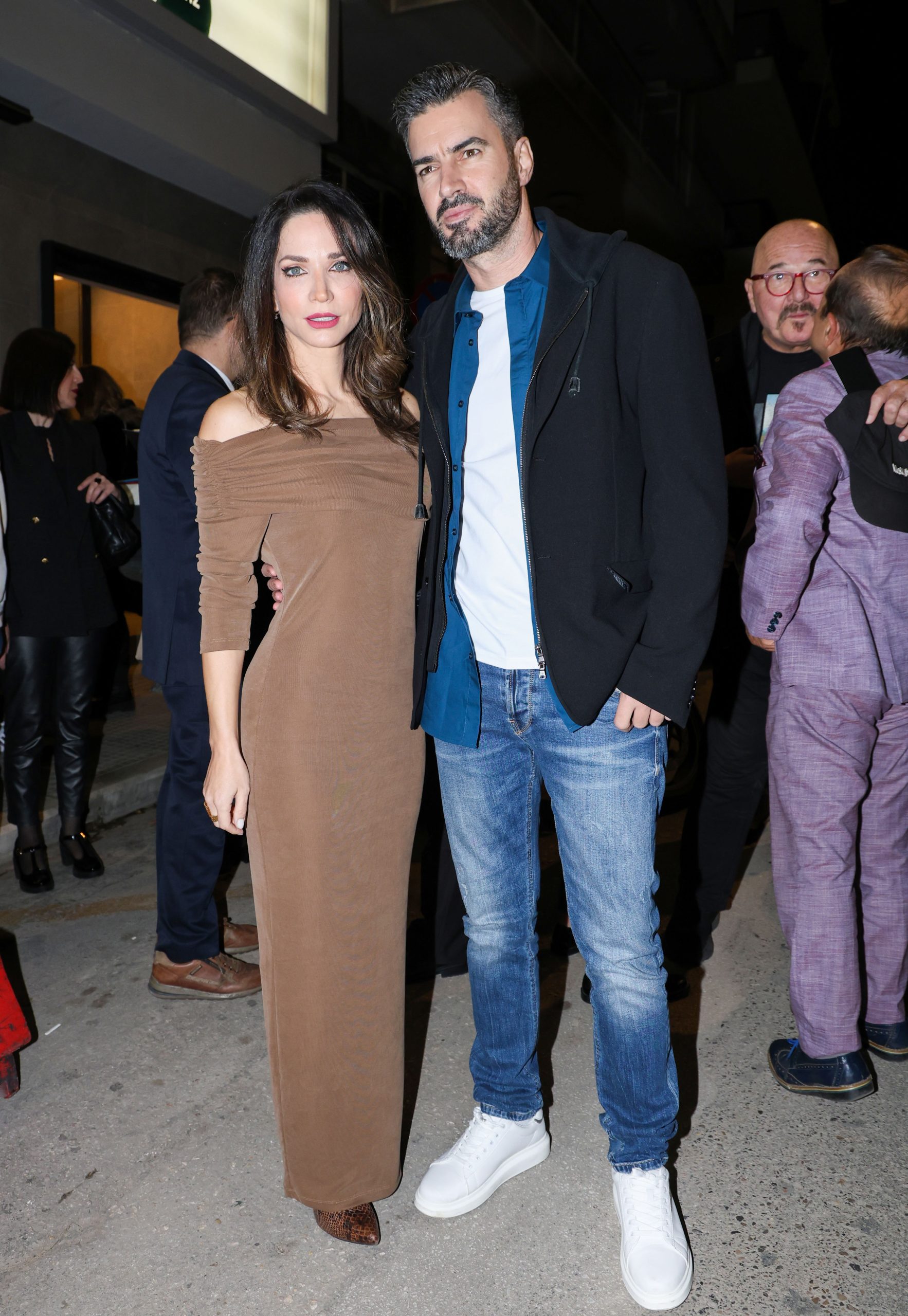 Η Κατερίνα Γερoνικολού επέλεξε ένα μακρύ, εφαρμοστό off-shoulder φόρεμα σε ζεστή καφέ απόχρωση, διακριτικά κοσμήματα και φυσικό μακιγιάζ. Ο Γιάννης Τσιμιτσέλης συνδύασε επέλεξε έβα casual ντύσιμο, τζιν με λευκό T-shirt, μπλε πουκάμισο, μαύρο jacket και λευκά sneakers.