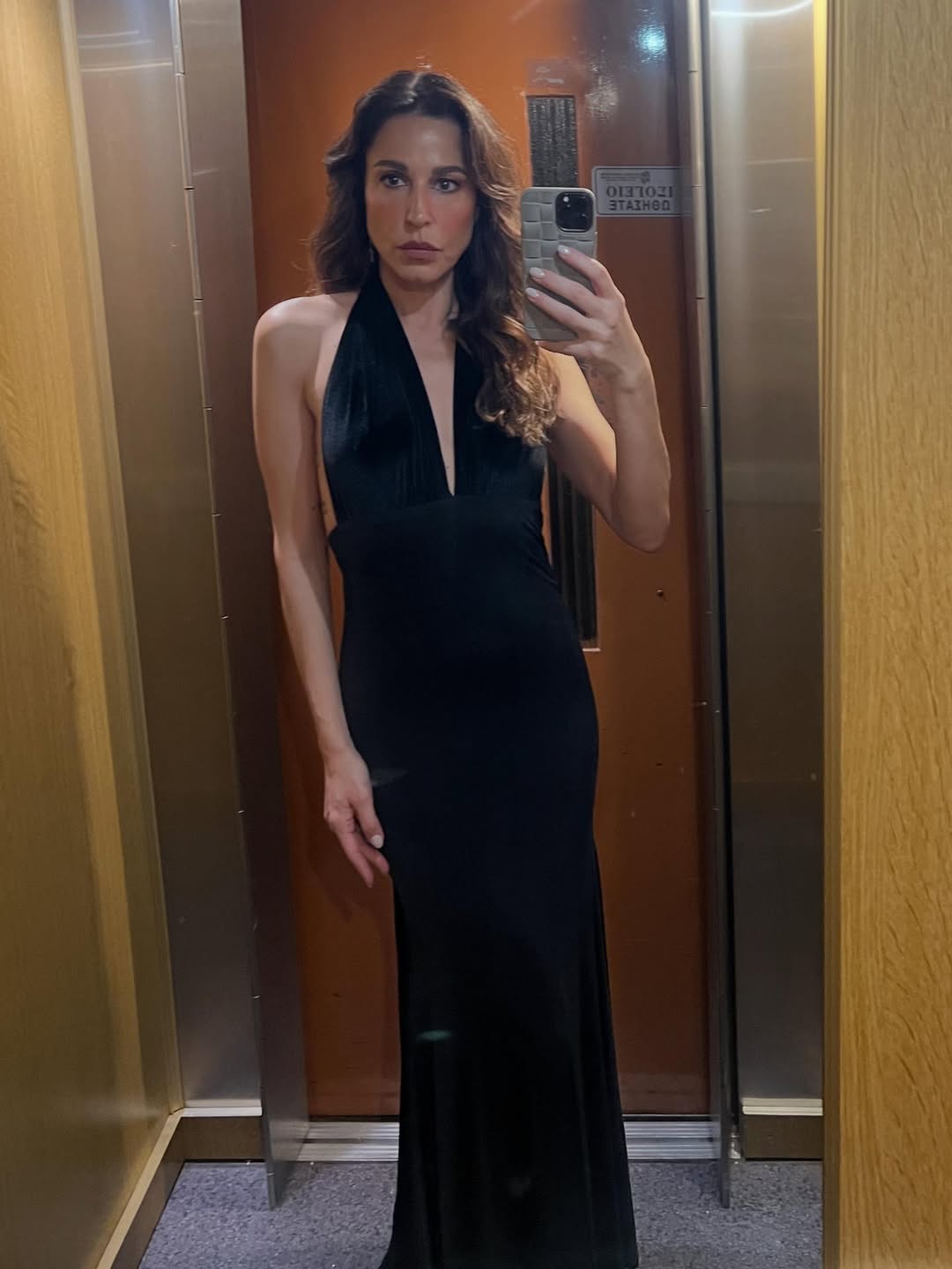 Για την περίσταση, η ηθοποιός επέλεξε ένα κομψό look με ανοιχτή πλάτη, δίνοντας μια stylish πινελιά στο cozy night.