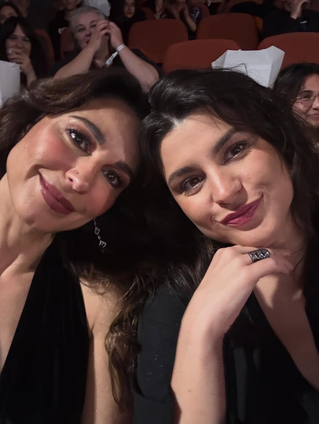 Η Κατερίνα Παπουτσάκη μοιράστηκε στον προσωπικό της λογαριασμό στιγμιότυπα από τη βραδιά, δημοσιεύοντας μια φωτογραφία στην οποία ποζάρει χαμογελαστή, ενώ σε άλλα καρέ φαίνονται οι δύο ηθοποιοί να βγάζουν selfies και να απολαμβάνουν τη χαλαρή ατμόσφαιρα της βραδιάς.