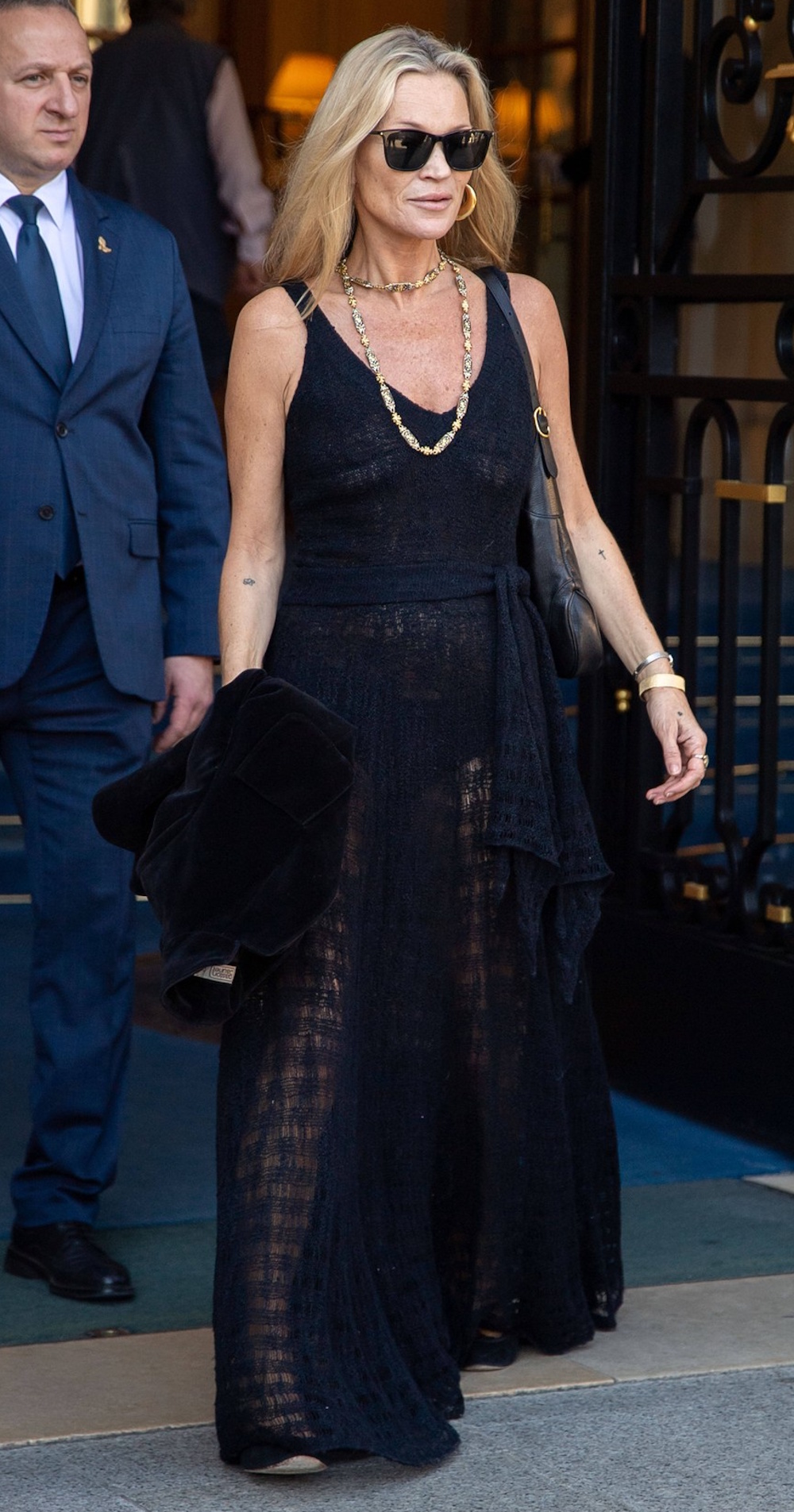 Ο φωτογραφικός φακός την πέτυχε και την ώρα που έκανε τα ψώνια της στους δρόμους της πόλης του φωτός. Εκεί, το μοντέλο επέλεξε ένα total black σύνολο, που φαινομενικά ήταν πιο «ήσυχο», ωστόσο η μάξι φούστα της ήταν επίσης see-through, κάτι που η Κέιτ δείχνει να προτιμά ιδιαίτερα.
