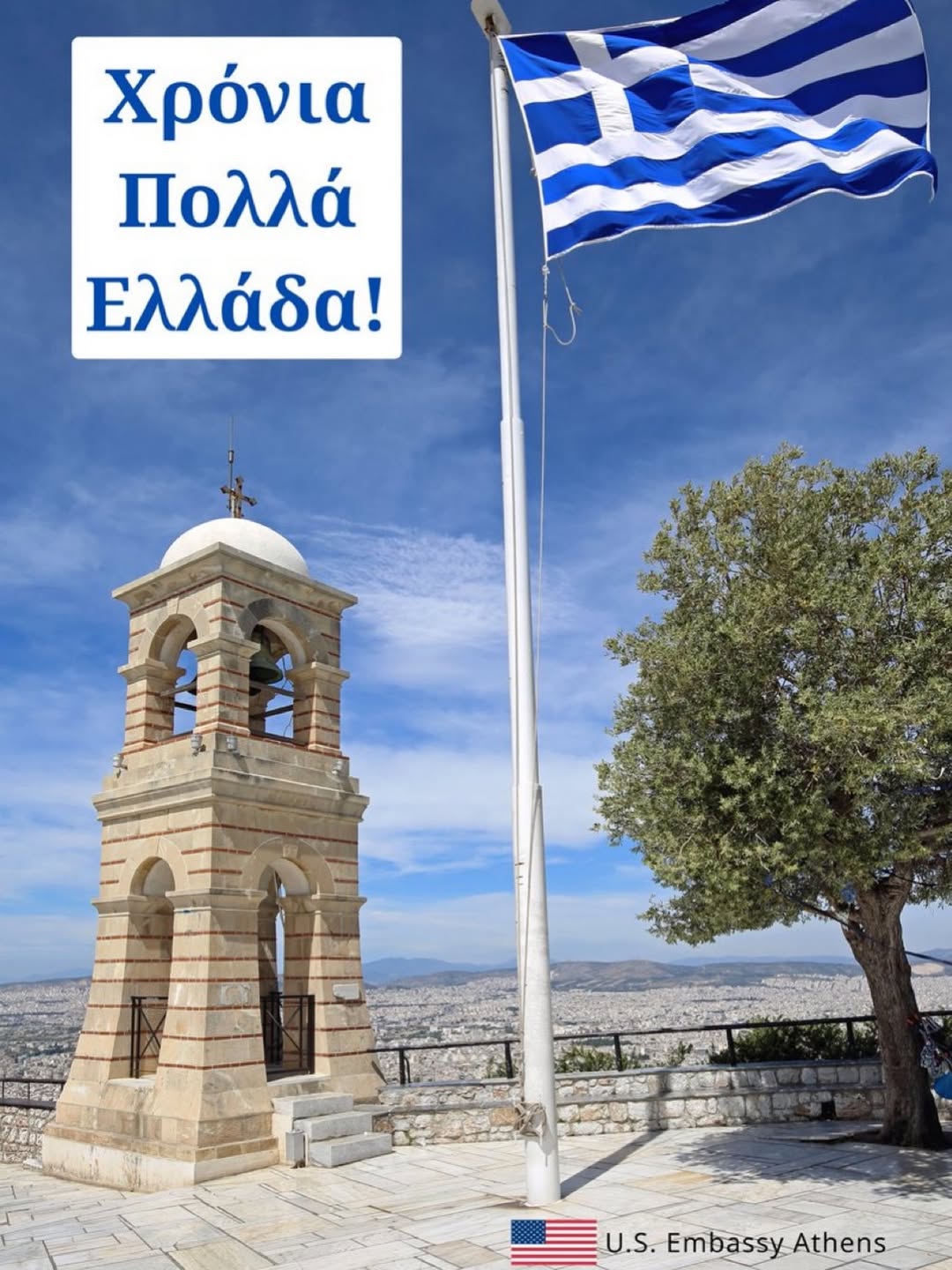 Με αφορμή την εθνική επέτειο, η Κίμπερλι Γκίλφοϊλ, πρέσβης των Ηνωμένων Πολιτειών, προχώρησε σε μια λιτή αλλά ιδιαίτερα συμβολική ανάρτηση στα social media. Συγκεκριμένα, επέλεξε να ευχηθεί γράφοντας «Χρόνια πολλά» στα ελληνικά, συνοδεύοντας το μήνυμά της με την ελληνική σημαία.