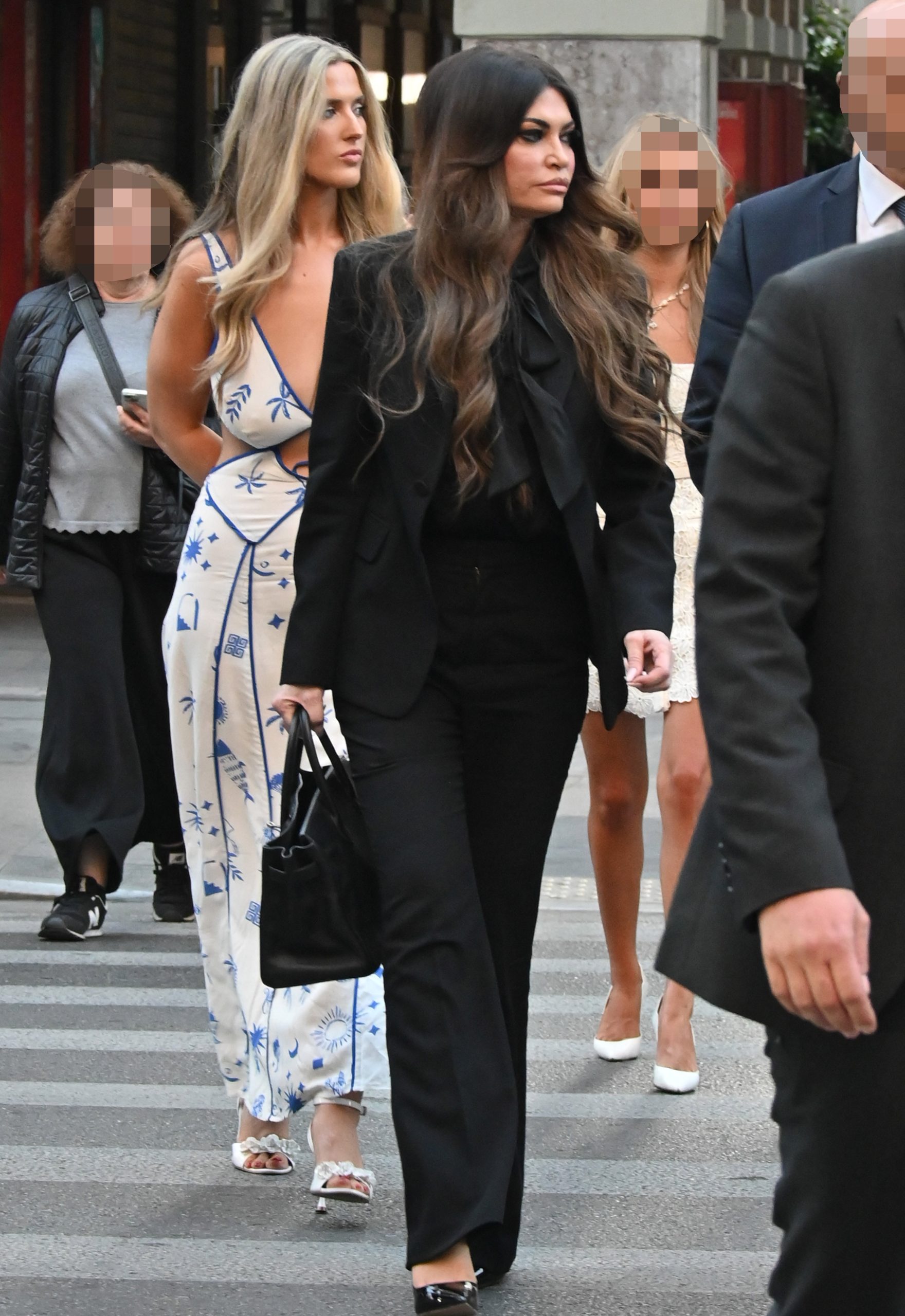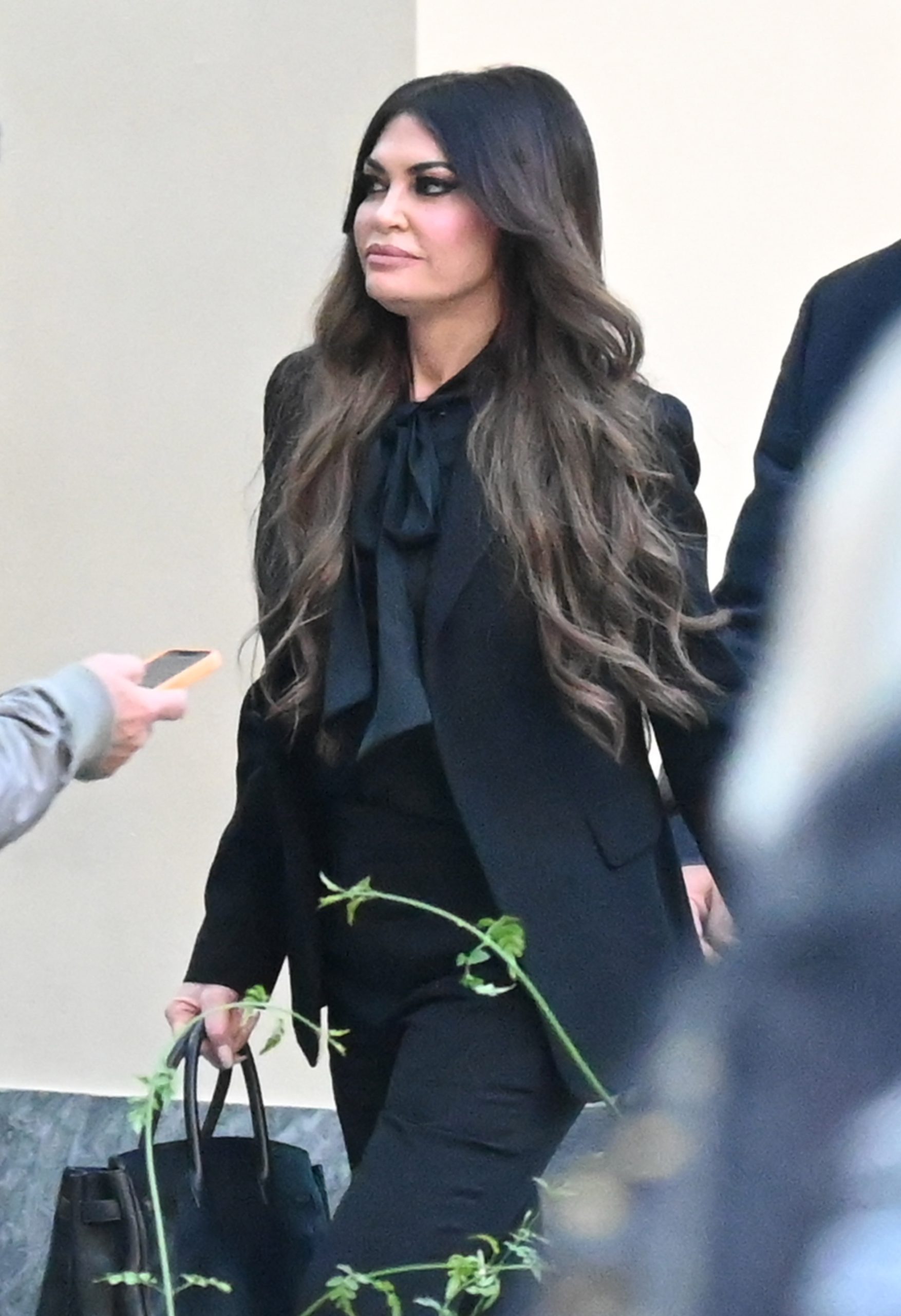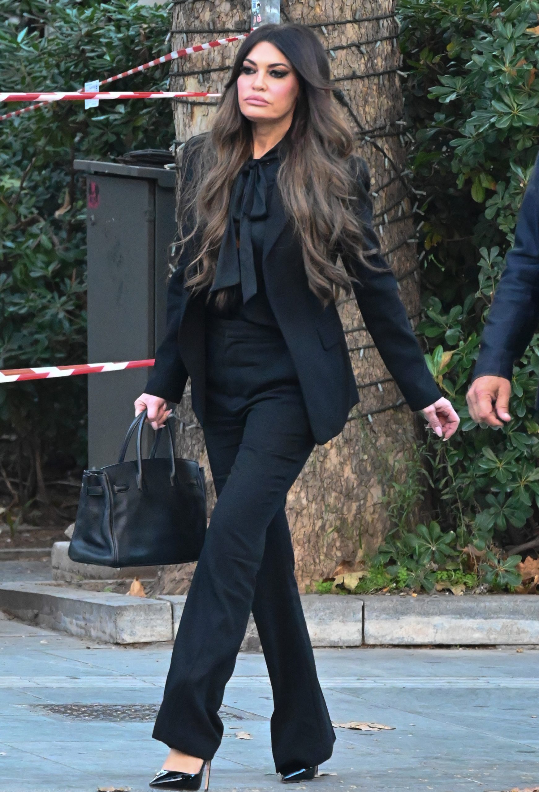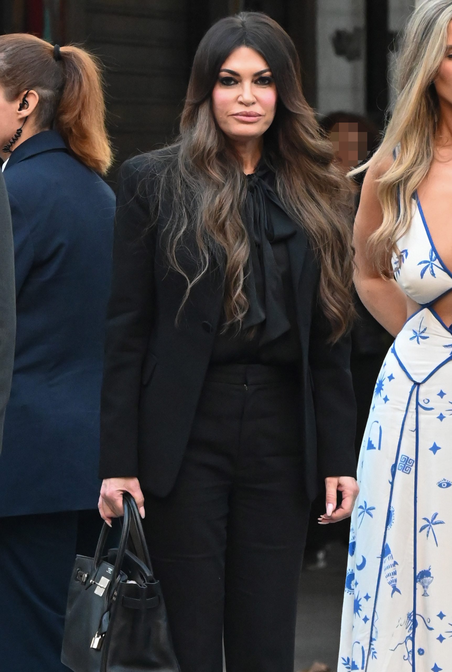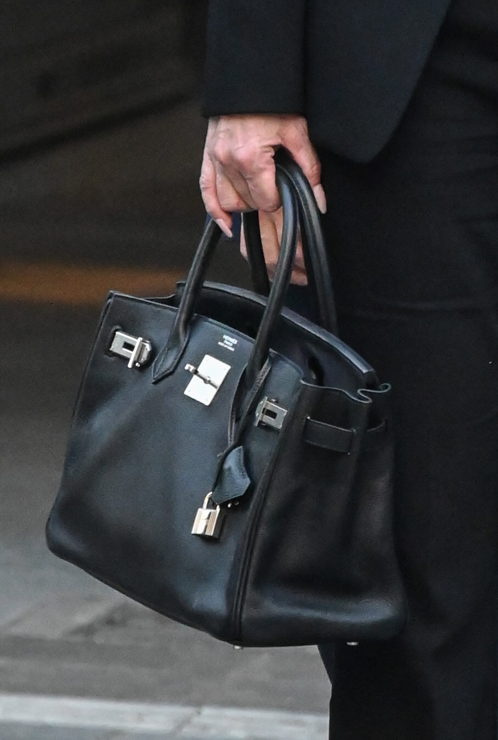Το στοιχείο που ξεχώρισε ήταν η τσάντα της: μια εμβληματική Hermès Birkin σε μαύρο δέρμα, με ασημί μεταλλικές λεπτομέρειες και το χαρακτηριστικό λουκέτο.