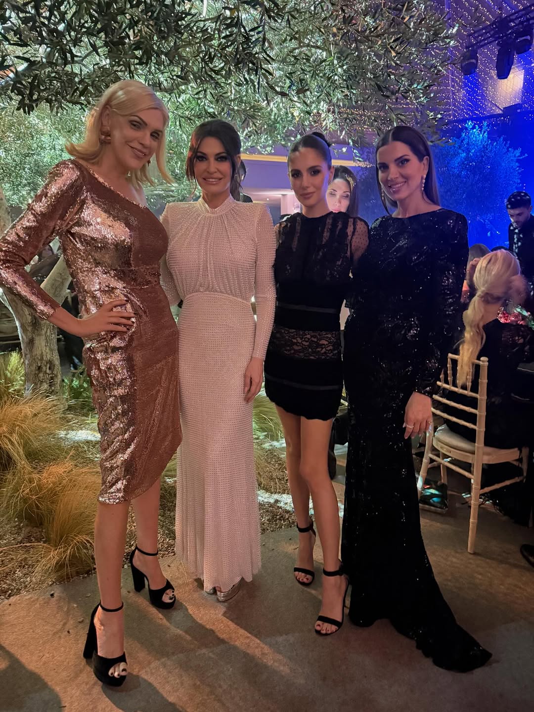 Στις φωτογραφίες από την ιδιαίτερη βραδιά ξεχωρίζει η παρουσία της Κίμπερλι Γκίλφοϊλ, η οποία βρέθηκε στο πλευρό φίλων της στην Ελλάδα, ποζάροντας χαμογελαστή με μία εντυπωσιακή άσπρη τουαλέτα.