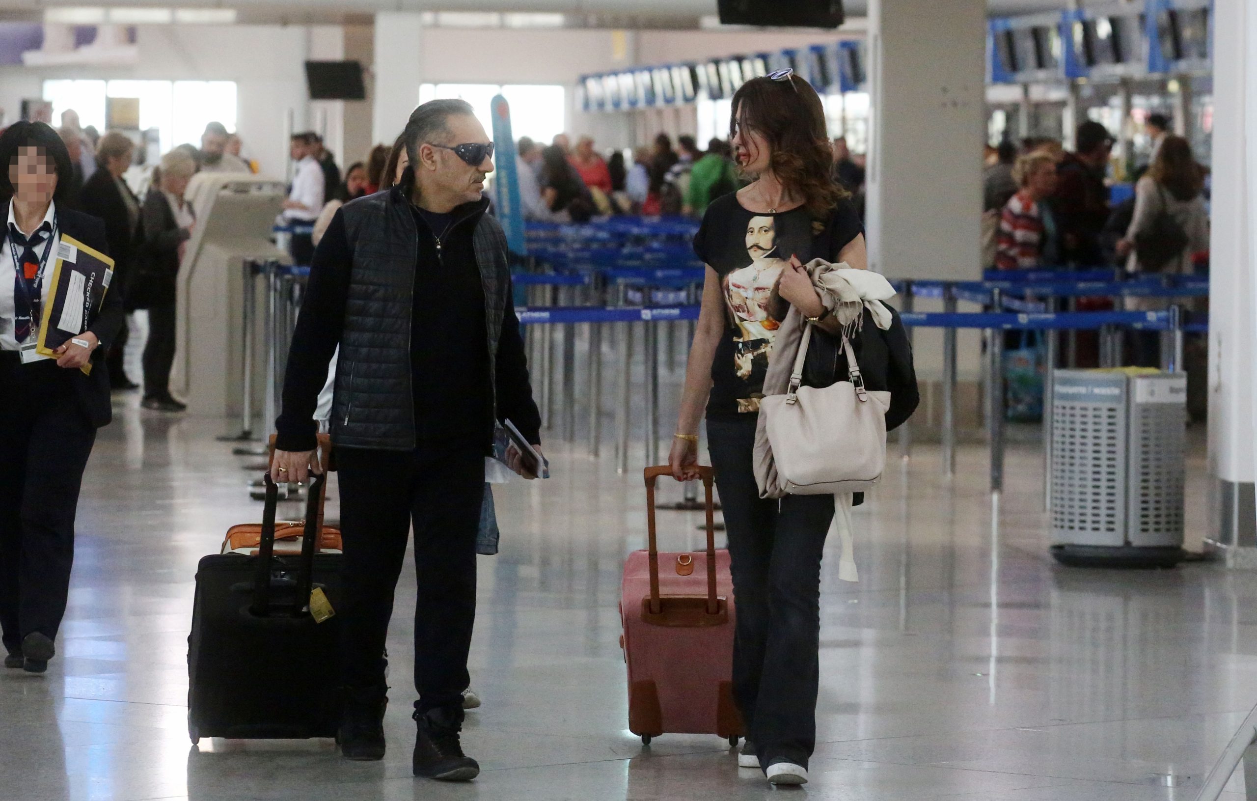 Τότε το ζευγάρι ταξίδευε με την κόρη τους προς την Κω, γενέτειρα του τραγουδιστή. Οι εικόνες τη δείχνουν διακριτική, στο πλευρό της οικογένειάς της.