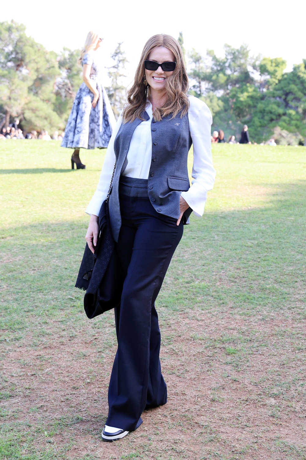 Αυτή τη φορά, στην χθεσινή επίδειξη, έλαμψε με το outfit, στο οποίο κυριαρχεί το μπλε και άσπρο χρώμα. H ίδια φαίνεται να είναι πολύ καλά στην υγεία της και να έχει αναρρώσει πλήρως.