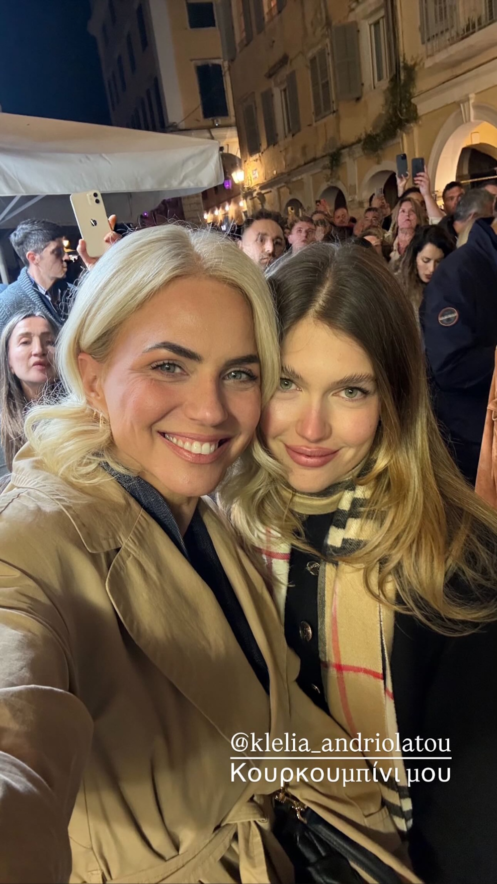 Σε ένα άλλο στιγμιότυπο, η Κλέλια φαίνεται πως πέτυχε και τη Χριστίνα Κοντοβά στους κατάμεστους δρόμους της Κέρκυρας και φωτογραφήθηκαν παρέα.