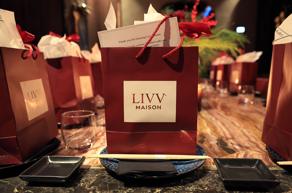 Κατά τη διάρκεια της βραδιάς παρουσιάστηκαν τα νέα festive αρώματα της Livv Maison, καθώς και sneak-preview της επερχόμενης συλλογής επίπλων από ξύλο και μάρμαρο — μια σειρά που έχει ήδη προκαλέσει ενδιαφέρον σε κορυφαίους interior designers και luxury resorts.