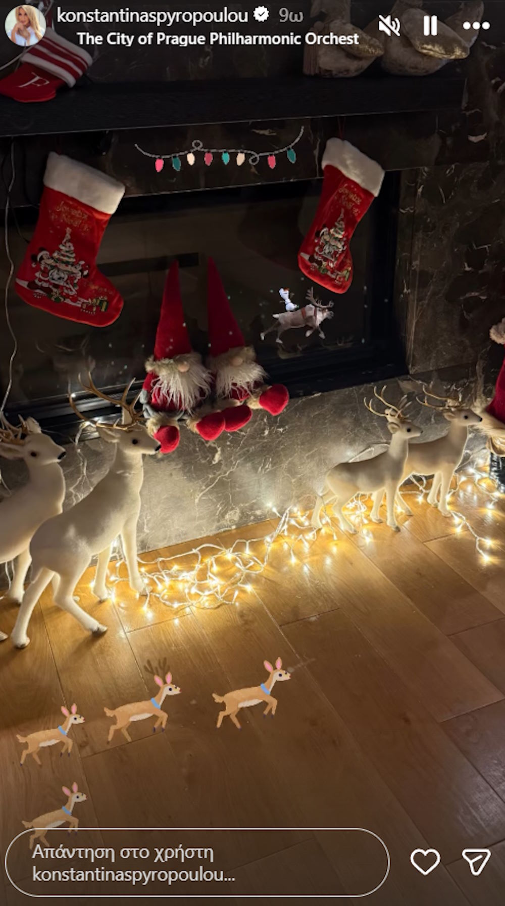 Η παρουσιάστρια απολαμβάνει τις γιορτές και όπως φάνηκε, της αρέσει να στολίζει το σπίτι της σαν να είναι βγαλμένο από παραμύθι. Η Κωνσταντίνα Σπυροπούλου δημοσίευσε στον προσωπικό της λογαριασμό στο Instagram, βίντεο από το χριστουγεννιάτικο δέντρο αλλά και τον στολισμό του σαλονιού της.