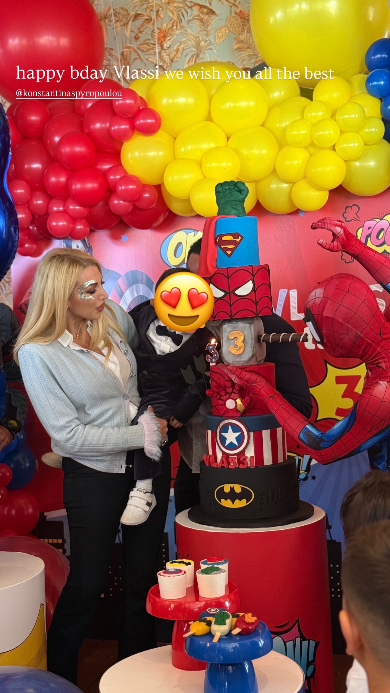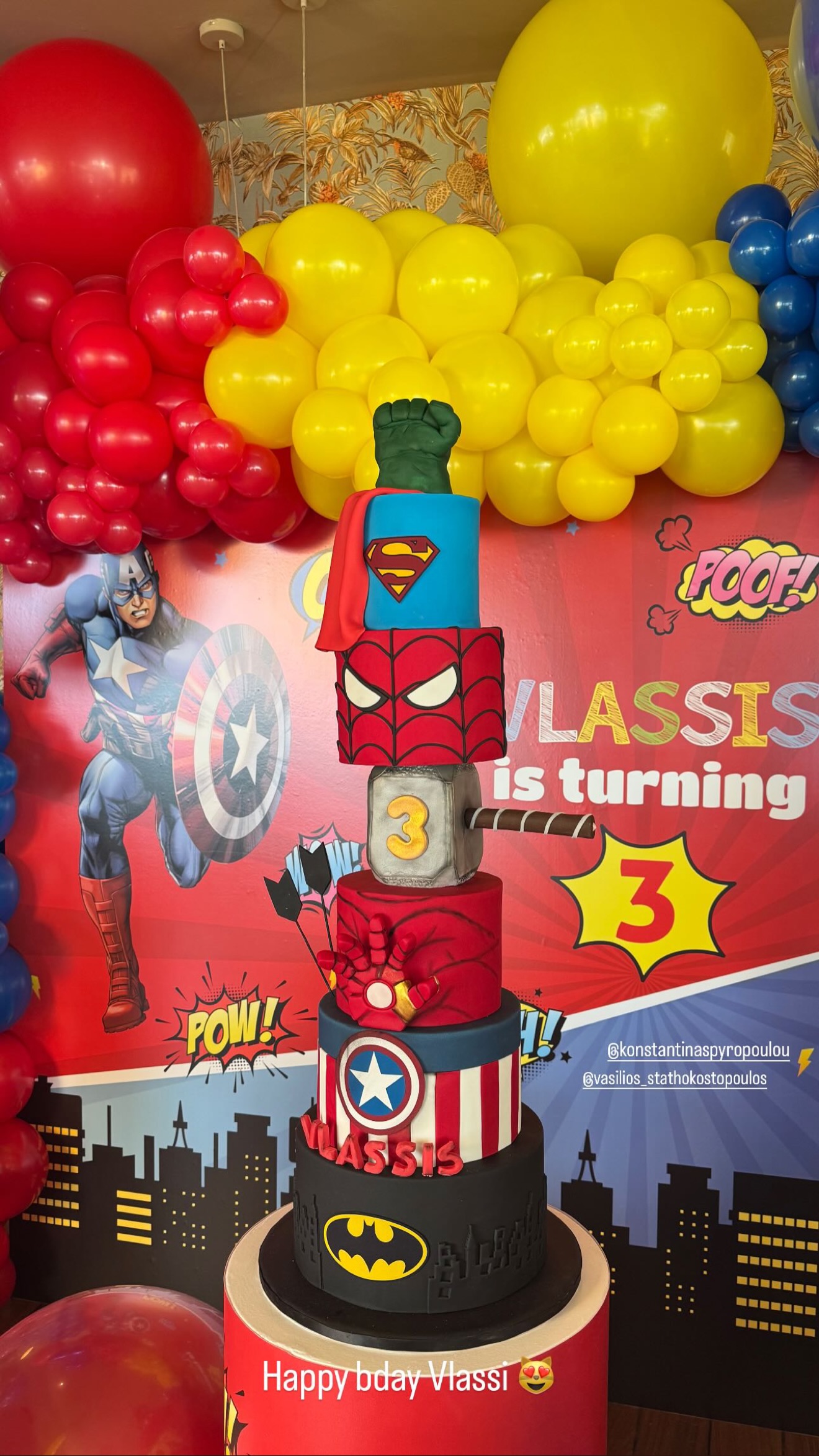 Η παρουσιάστρια μοιράστηκε μέσα από τον προσωπικό της λογαριασμό στο Instagram στιγμιότυπα από τη γιορτή, δημοσιεύοντας βίντεο και φωτογραφίες από το πάρτι, αλλά και από την εντυπωσιακή, πανύψηλη τούρτα με τους αγαπημένους σούπερ ήρωες του μικρού.