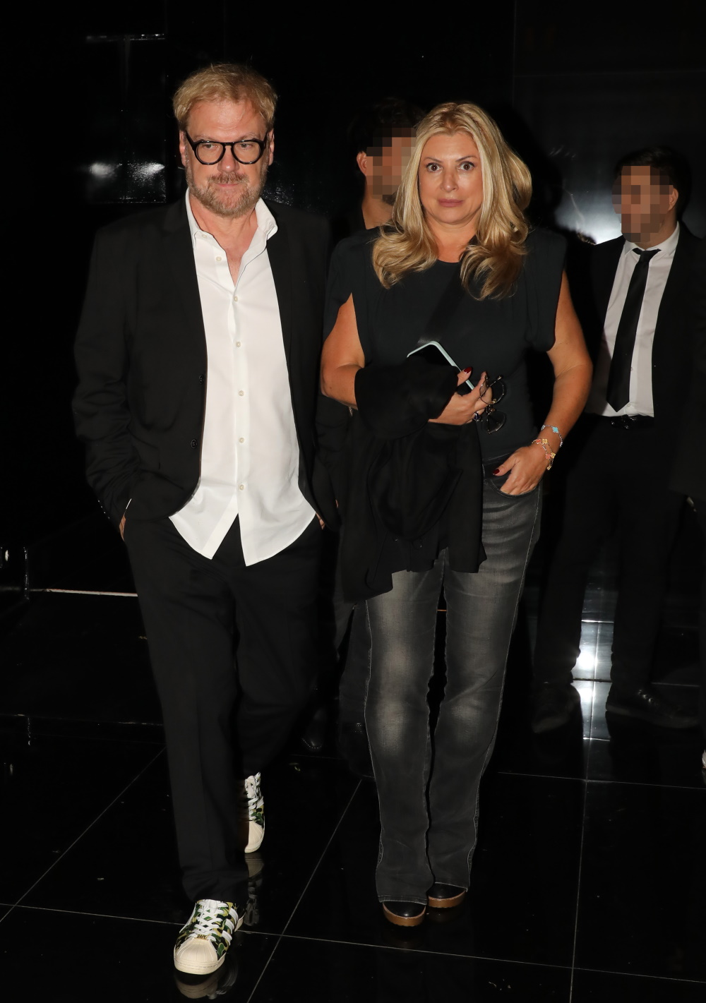 Η Χριστίνα Πολίτη επέλεξε για τη βραδινή έξοδο ένα total black look με τζιν παντελόνι και αμάνικο τοπ.