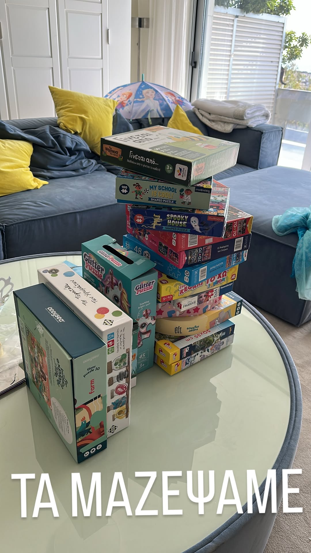Το μεσημέρι του Σαββάτου, η Μαίρη Συνατσάκη πέρασε λίγα χαλαρά λεπτά στην κουζίνα φτιάχνοντας τυροπιτάκια, ενώ η μικρή Ολίβια αποφάσισε να τακτοποιήσει το σαλονάκι. Το αποτέλεσμα; Όλα τα κομμάτια του παζλ είχαν βγει έξω και επικρατούσε μικρό χάος, μέχρι που η Μαίρη έκανε ένα poll στους followers της για να αποφασίσει αν έπρεπε να τα πετάξει ή να τα μαζέψει.
