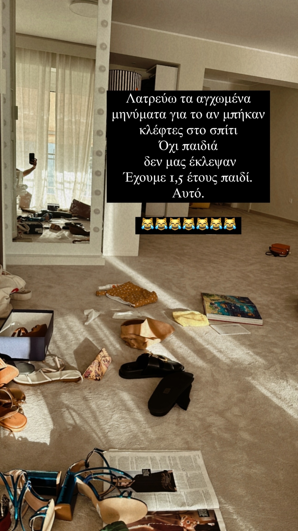 «Λατρεύω τα αγχωμένα μηνύματα για το αν μπήκαν κλέφτες στο σπίτι. Όχι παιδιά δεν μας έκλεψαν απλά έχουμε 1,5 έτους παιδί. Αυτό», ήταν η απάντησή της.