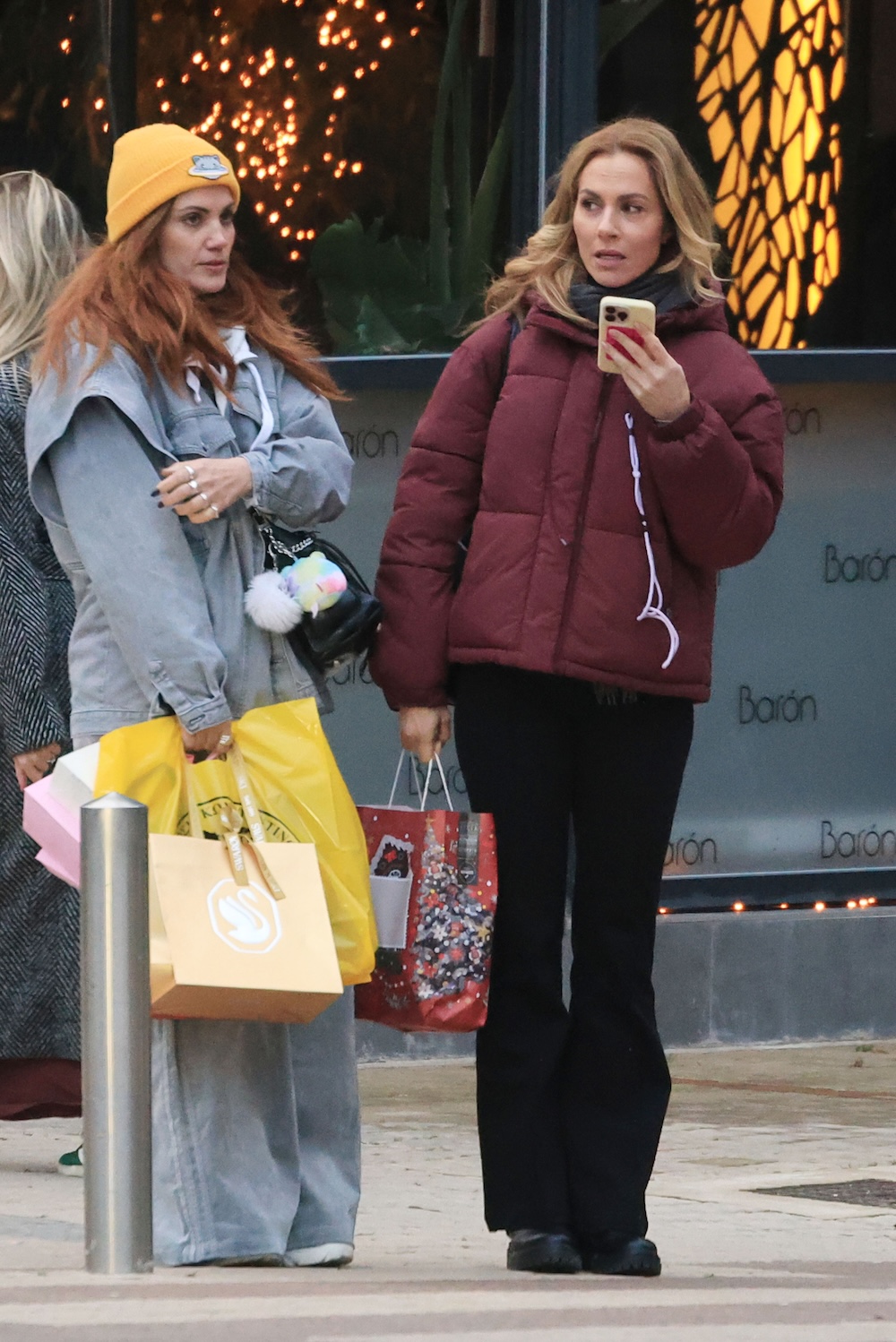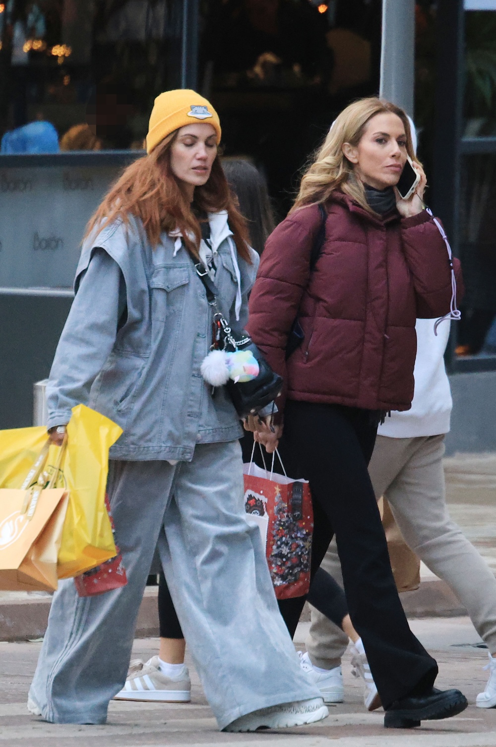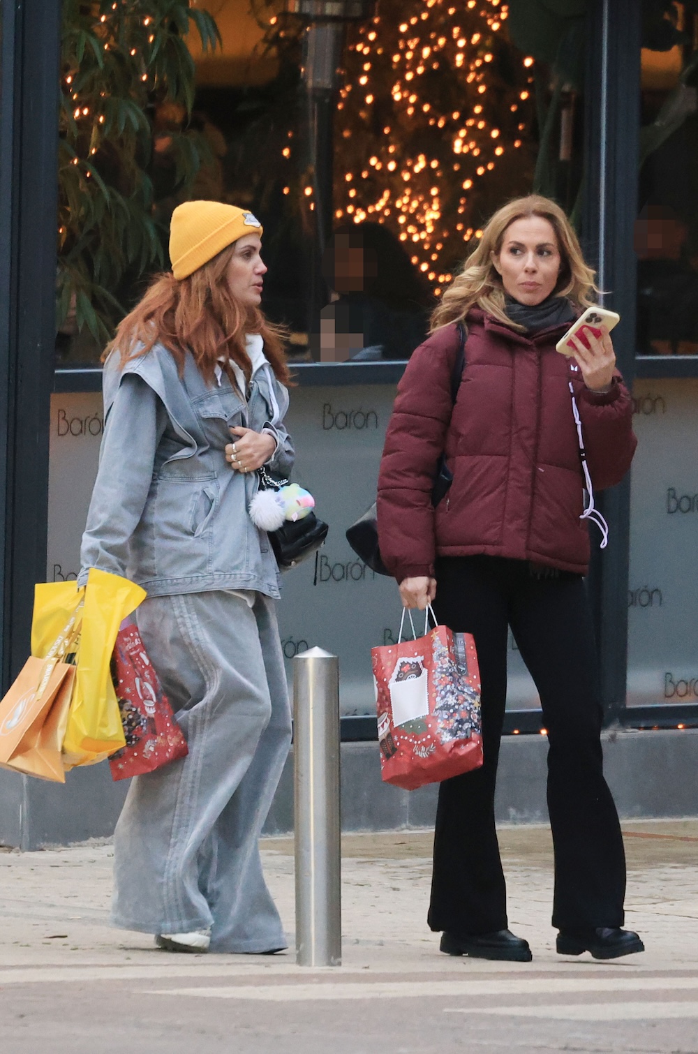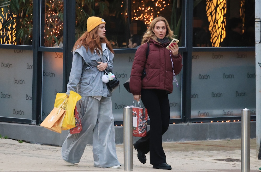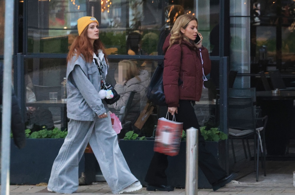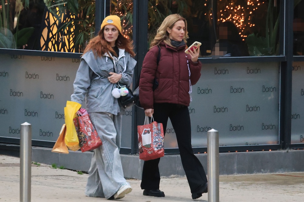 Η Μαίρη Συνατσάκη με φαρδύ παντελόνι σε γκρι χρώμα, denim jacket σε φαρδύ στιλ, sneakers, μαύρη τσάντα και κίτρινο σκούφο, ακολουθούσε τη φίλη της Ντορέττα Παπαδημητρίου, η οποία, με μπουφάν σε μπορντό χρώμα, μαύρο παντελόνι και μαύρα μποτάκια, προπορευόταν ελαφρώς, μιλώντας στο τηλέφωνο.