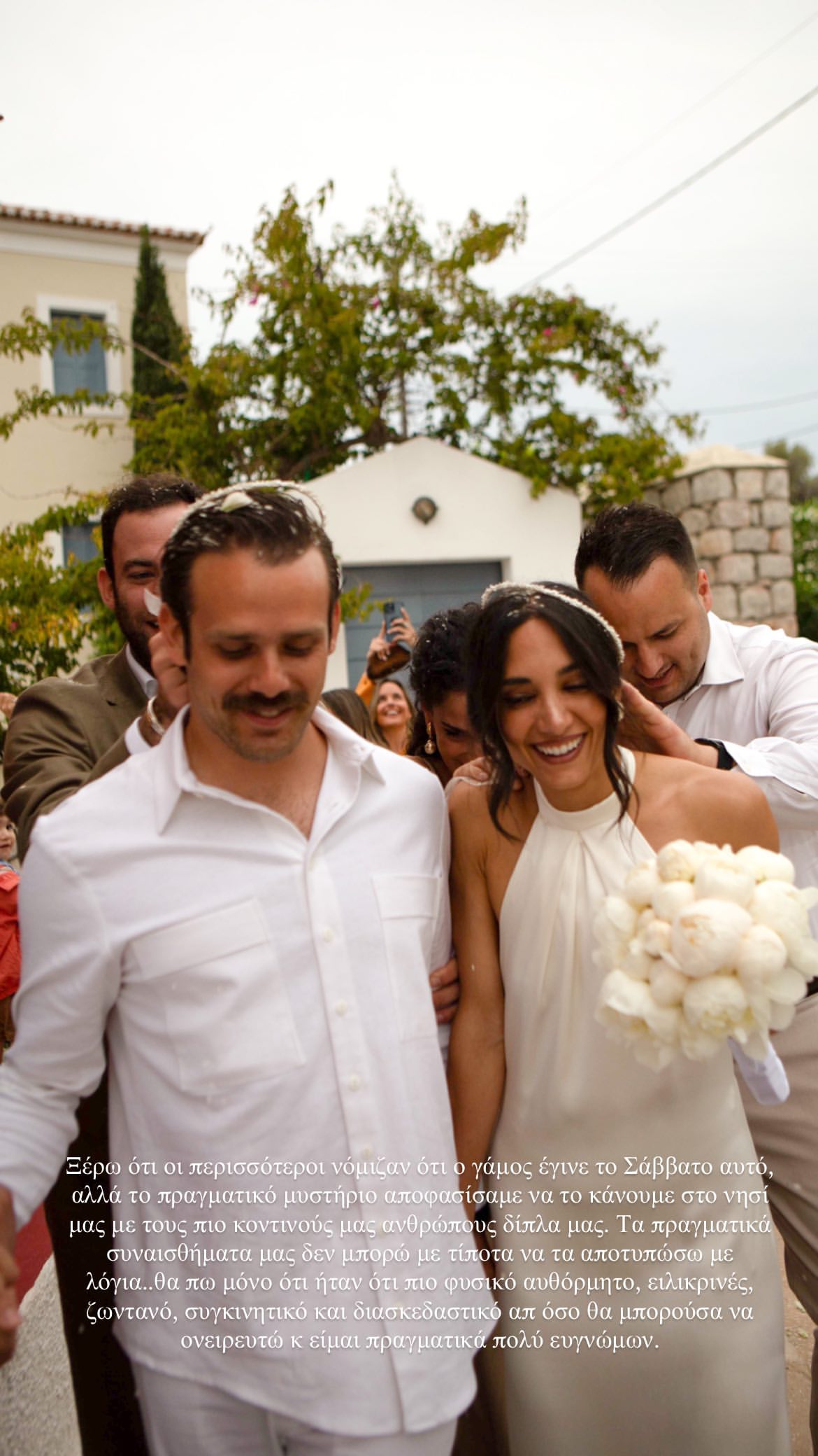 Το πρωί της Τρίτης, η Ελληνίδα σχεδιάστρια μόδας ανέβασε στο Ιnstagram σχετικό post, μια συλλογή από φωτογραφίες από τον θρησκευτικό γάμο της στις Σπέτσες. Η ίδια γράφει: «Σπέτσες 20-5-2023. Είναι τόσα, μα τόσα πολλά που θα μπορούσα να γράψω και να μοιραστώ μαζί σας για εκείνο το Σαββατοκύριακο που πραγματικά δεν χωράνε σε ένα, δυο ή τρία carousel.. Ξέρω ότι οι περισσότεροι νόμιζαν ότι ο γάμος έγινε το Σάββατο αυτό, αλλά το πραγματικό μυστήριο αποφασίσαμε να το κάνουμε στο νησί μας με τους πιο κοντινούς μας ανθρώπους δίπλα μας. Τα πραγματικά συναισθήματα μας δεν μπορώ με τίποτα να τα αποτυπώσω με λόγια. Θα πω μόνο ότι ήταν ότι πιο φυσικό αυθόρμητο, ειλικρινές, ζωντανό, συγκινητικό και διασκεδαστικό από όσο θα μπορούσα να ονειρευτώ και είμαι πραγματικά πολύ ευγνώμων».